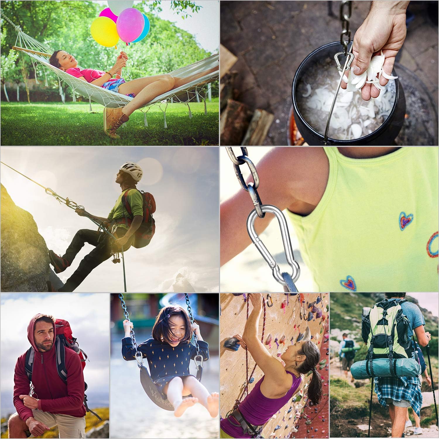 Multiple Use–These carabiner clips are multifunctional binding, rigging & anchoring hardware. Perfect for ropes, chains, straps backpack, key ring, camping, hiking, fishing.(Notice:Not for climbing adventures)