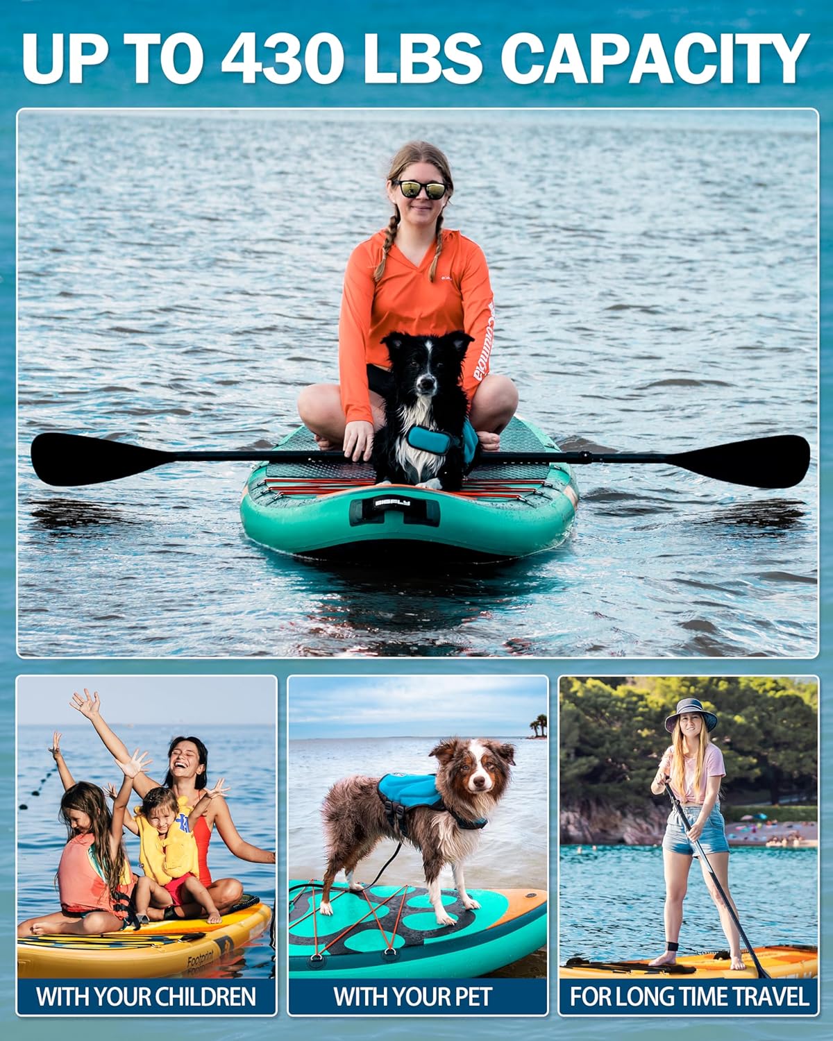 11’6×35″ Super Wide Inflatable Stand Up Paddle Board, Ultra Stable Wide SUP for 2+1 People/Family/Big Size, 100L Backpack, All-Round Sup Board, US Big Fin