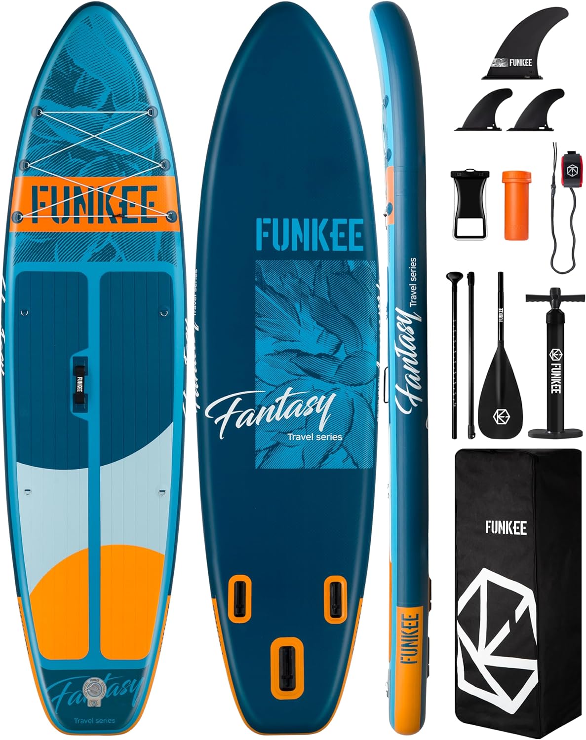 【COMPLETE PADDLE BOARD KIT & 24H SERVICE】All professional accessories: safety leash, hand pump, 3 removable fins, floating paddle, floating phone case, backpack, . Whether it’s for travel, outdoor activities, or everyday use, FUNKEE paddle board meets your needs and is convenient to carry. 24-hour customer service support: Contact us anytime, and our professional team will help you solve any issues and provide excellent customer service.