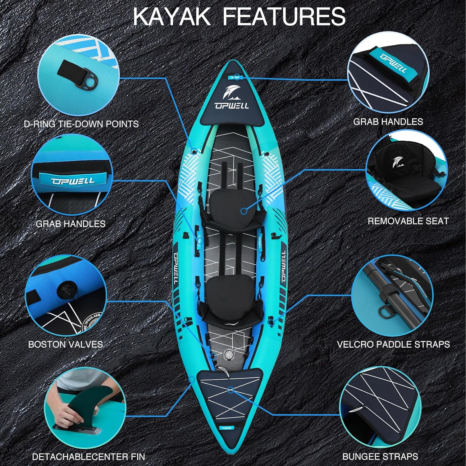 【PROFESSIONAL K2 DESIGN】The inflatable recreational kayak from UPWELL, it’s 11′ long x 37″ wide x 14.2″ height, weighs 25lbs. The weight capacity up to around 550lbs, making it lightweight for portability and especially suited for a solo paddler who occasionally needs a tandem; perfect for adult and child—or paddling with a furry friend. Our inflatable kayak is sutiable for all beginners and all skill levels to explore and enjoy themselves in different areas for traveling, touring, fishing.
