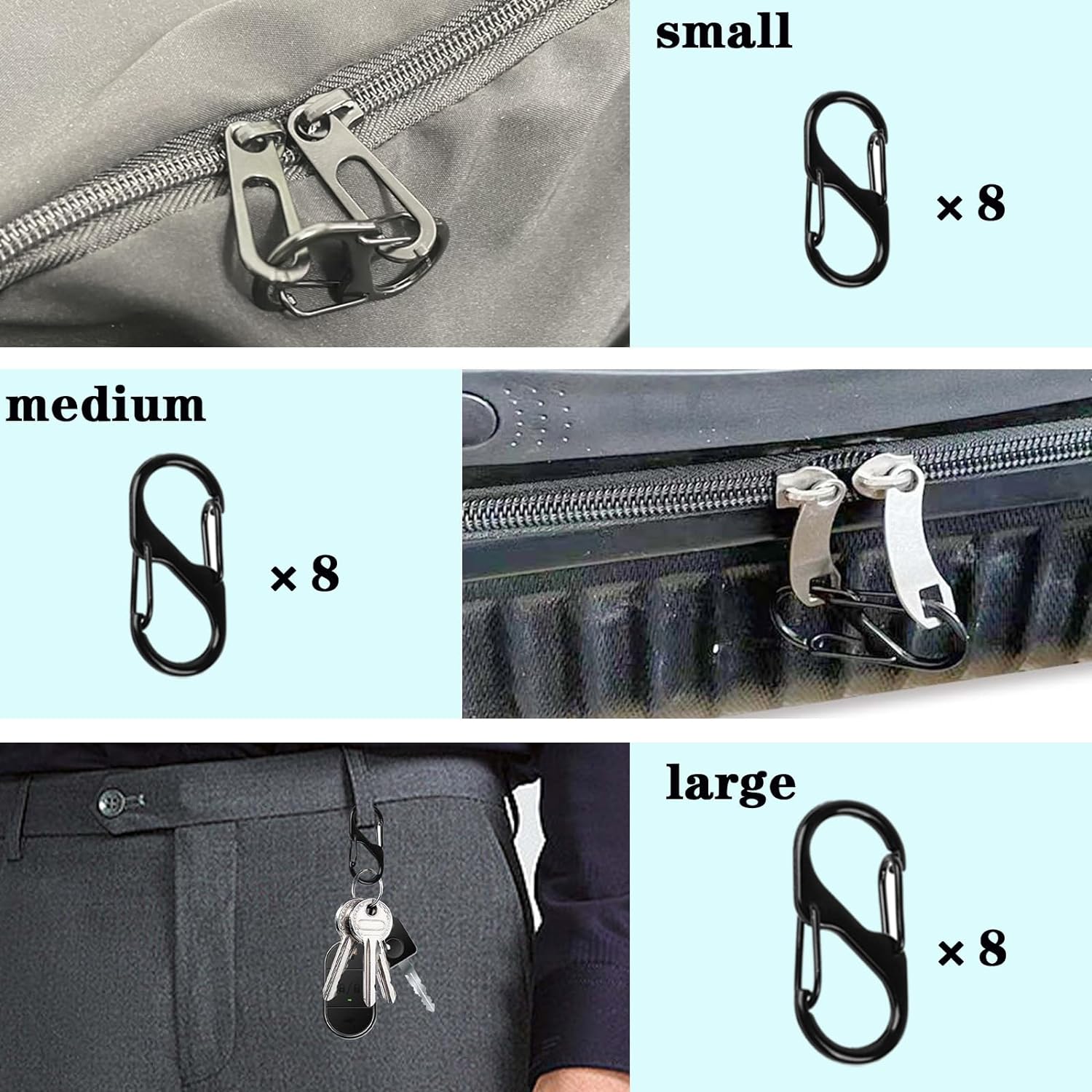 ✅Widely Uses: You can use the small carabiner on hanging bags, backpacks, tents, keychains or other small items,s biner carabiner,zipper clips anti theft,they are suitable for your daily use or many other outdoor activities, such as parties, outdoor sports or camping.