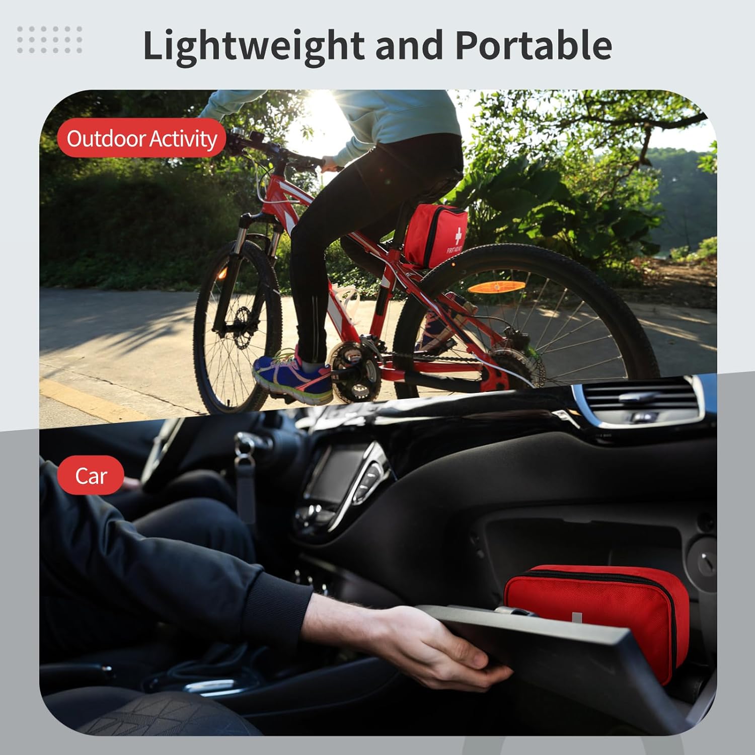 【Compact & Portable to Carry】Each individual first aid kit measures about 8.7 x 6.7 x 2.8 inches and weighs just about 8.5 ounces. Compact and lightweight, it won’t take up much space. Keep one at home and stash the other in your car, suitcase for travels, or backpack for camping trips – be prepared for any situation life throws your way