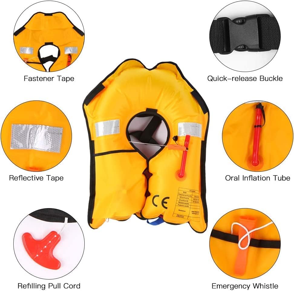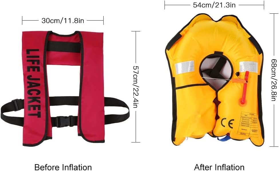 [A must for all kinds of water sports! ]: This automatic inflatable jacket is made of high-quality materials and can fit adults up to 330 pounds. It can quickly inflate in 3-5 seconds when exposed to water.