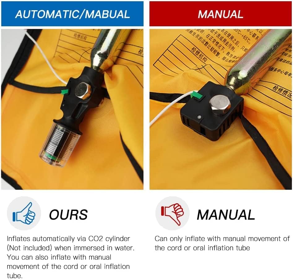 Note: This self-inflating jacket is not equipped with a 33g carbon dioxide gas cylinder, you need to buy it yourself!