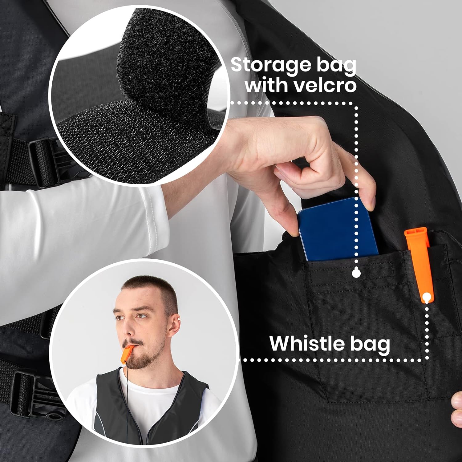 [WHISTLE & POCKET] Comes with a free survival whistle which is a good helper for water sports, whether you contact your teammates or ask for help. Unique designed inside pocket with velcro, good protection for your valuables.