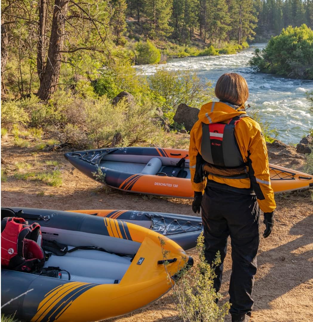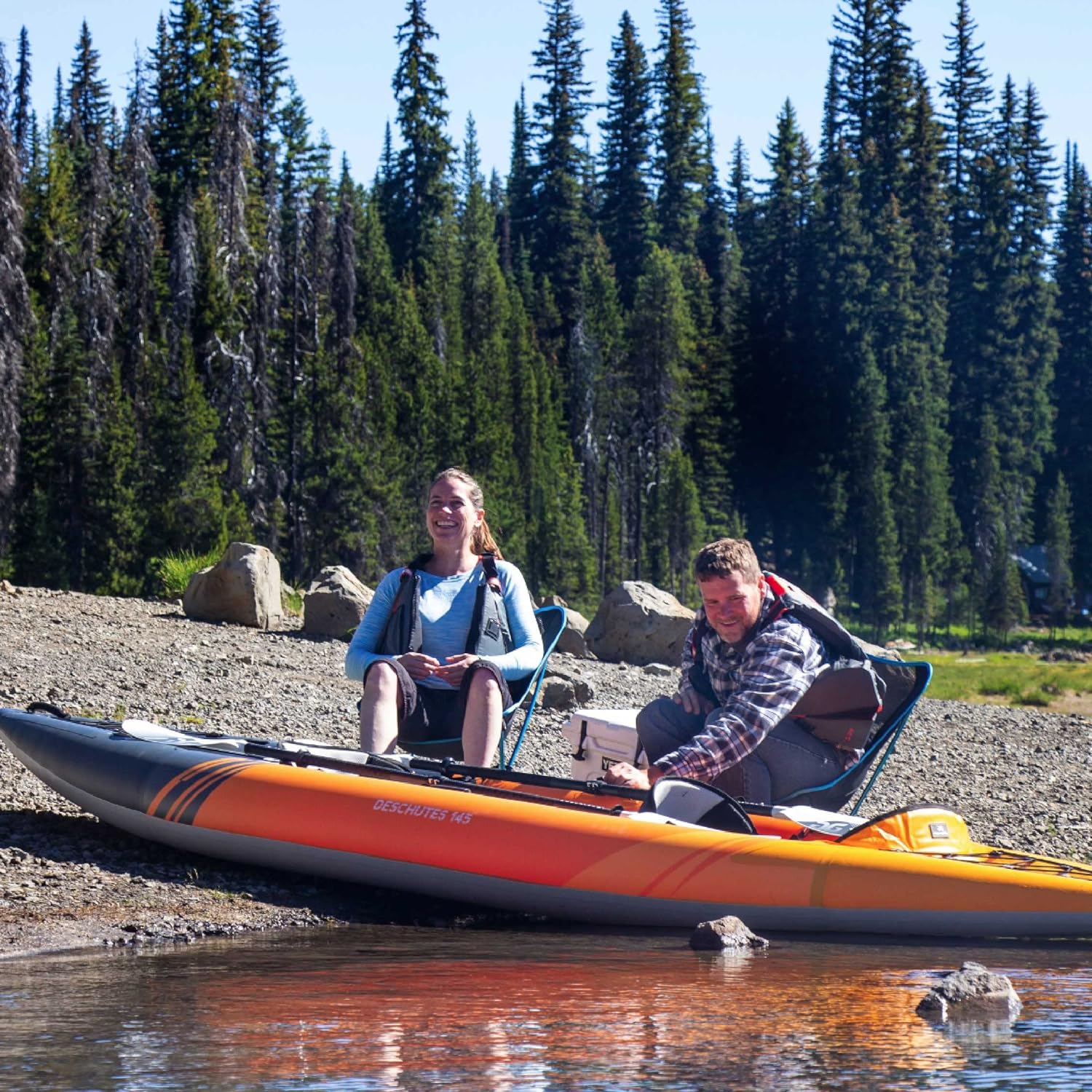 At just over 14-feet long and with a total weight of 25-pounds, the Deschutes 145 inspires confidence with its lightweight, rigid design built to perform and provide effortless paddling for two people on lakes, rivers, and other waterways.