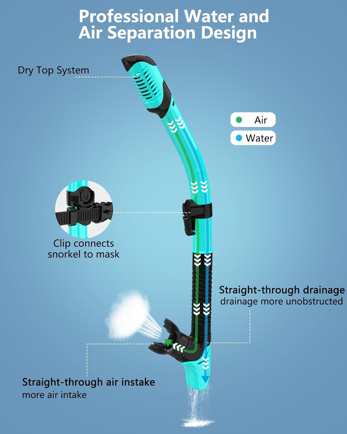 4. Float valve design for fully dry snorkeling tube, flexible breathing tube for easy breathing and drainage