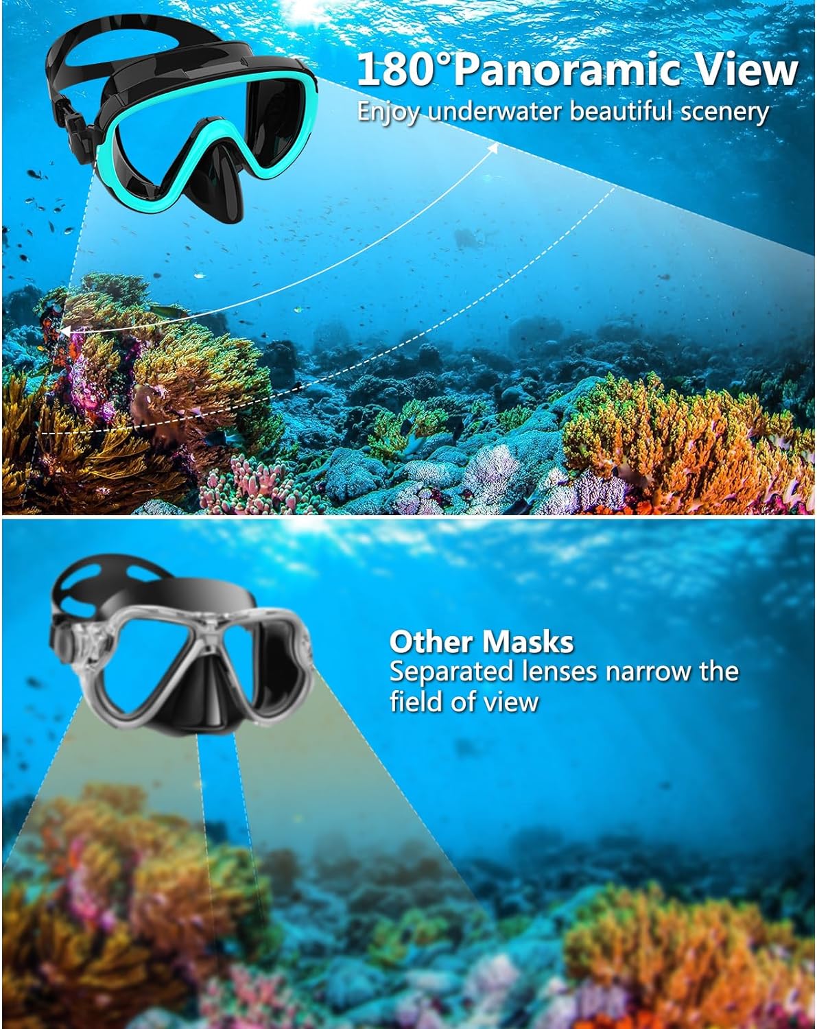 【Anti-fog, anti-leak】Anti-fog – Special structural design can effectively prevent fog. Leak-proof – Made of food-grade silicone skirt, it perfectly fits the contours of the face, effectively prevents leakage, is soft and comfortable.