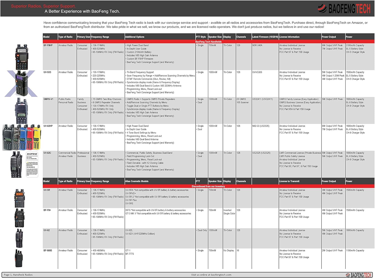 Upgrades from our Previous Generation UV-5R: Twice the Output Power (8 watts up from 4 watts output), New Hardened Durable Radio Shell, 30% Larger Battery, V-85 High Gain Antenna (Twice the Antenna Performance), USA Support + In-depth User Guide Included; A PC03 FTDI Programming Cable is Recommended for Easier PC Programming