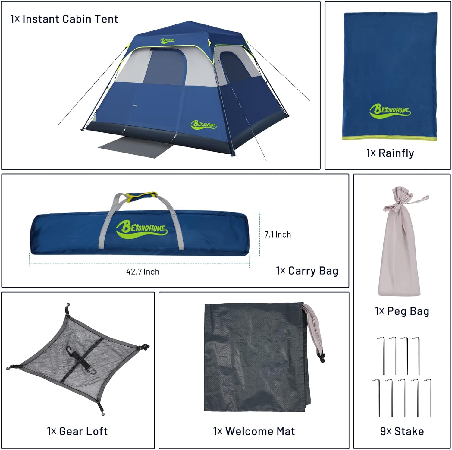 【What You Get】1x 4-person instant cabin tent, 1x rainfly, 1x carry bag, 1x gear loft, 1x welcom mat, 9x stake 1 year technical support, If you encounter other problems in use, we’ll give you a satisfied solution within 18 hours.