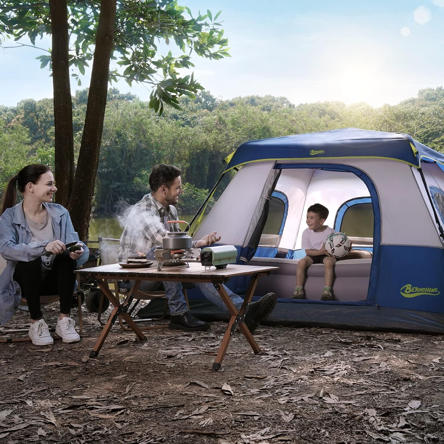 【Water-resistant & Windproof Everywhere】The tent is effortlessly convenient yet rugged in harsh environments. It features more steel stakes to fix the tent on the ground ensuring sturdiness, and a detachable rainfly to protect you against wind and rain. Also, the sealed seams and the unique waterproof strip make this a high-quality water-resistant tent. It is your perfect companion to remain dry and comfortable while camping in inclement climates.