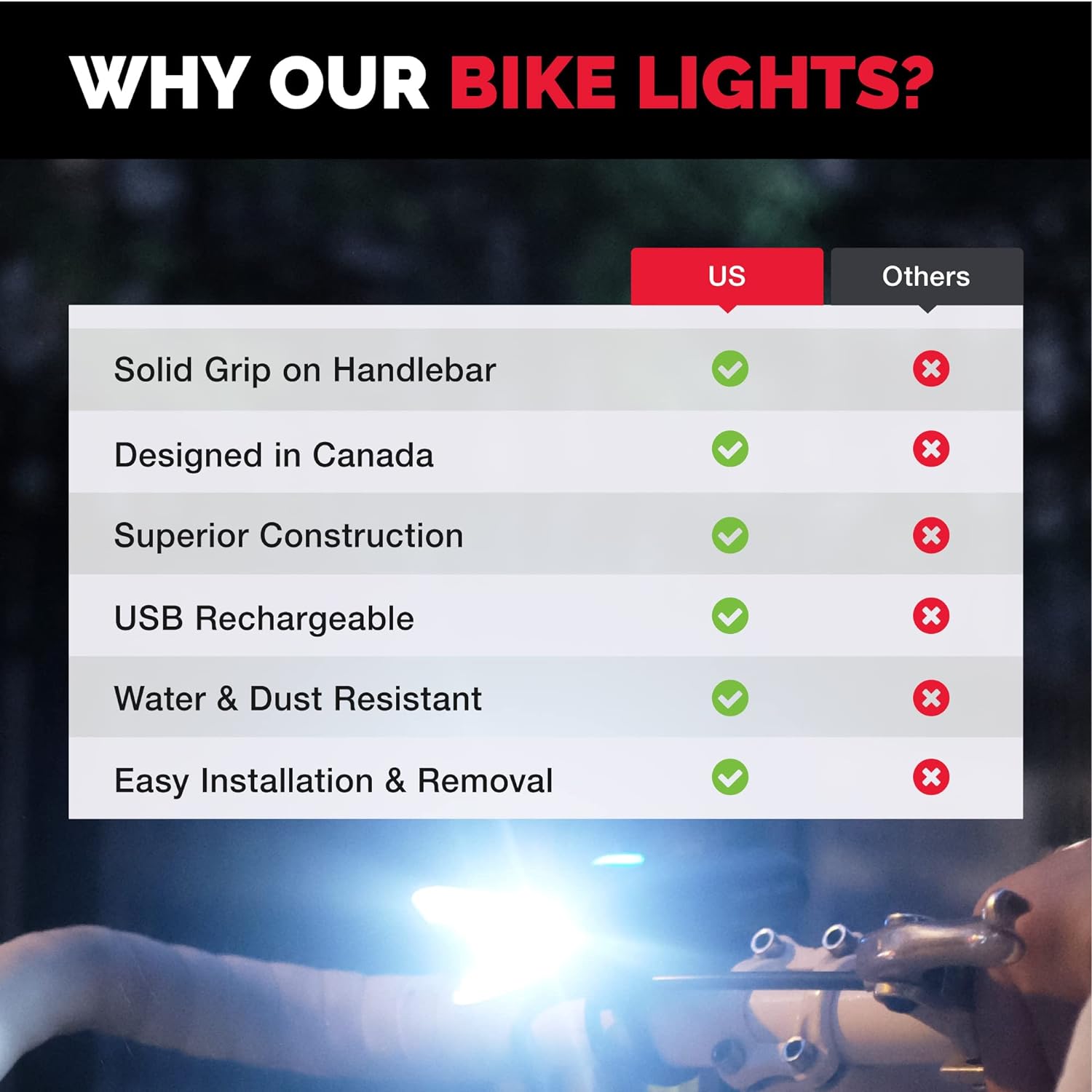 BEST IN CLASS – Did you know that about 80% of cycling accidents occur in daylight? Our light has a specially engineered beam reflector that makes you more visible on the road Day & Night.