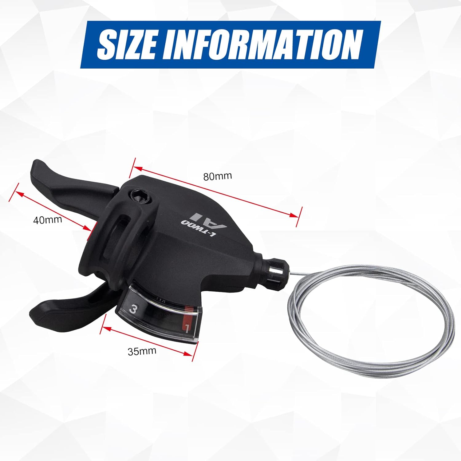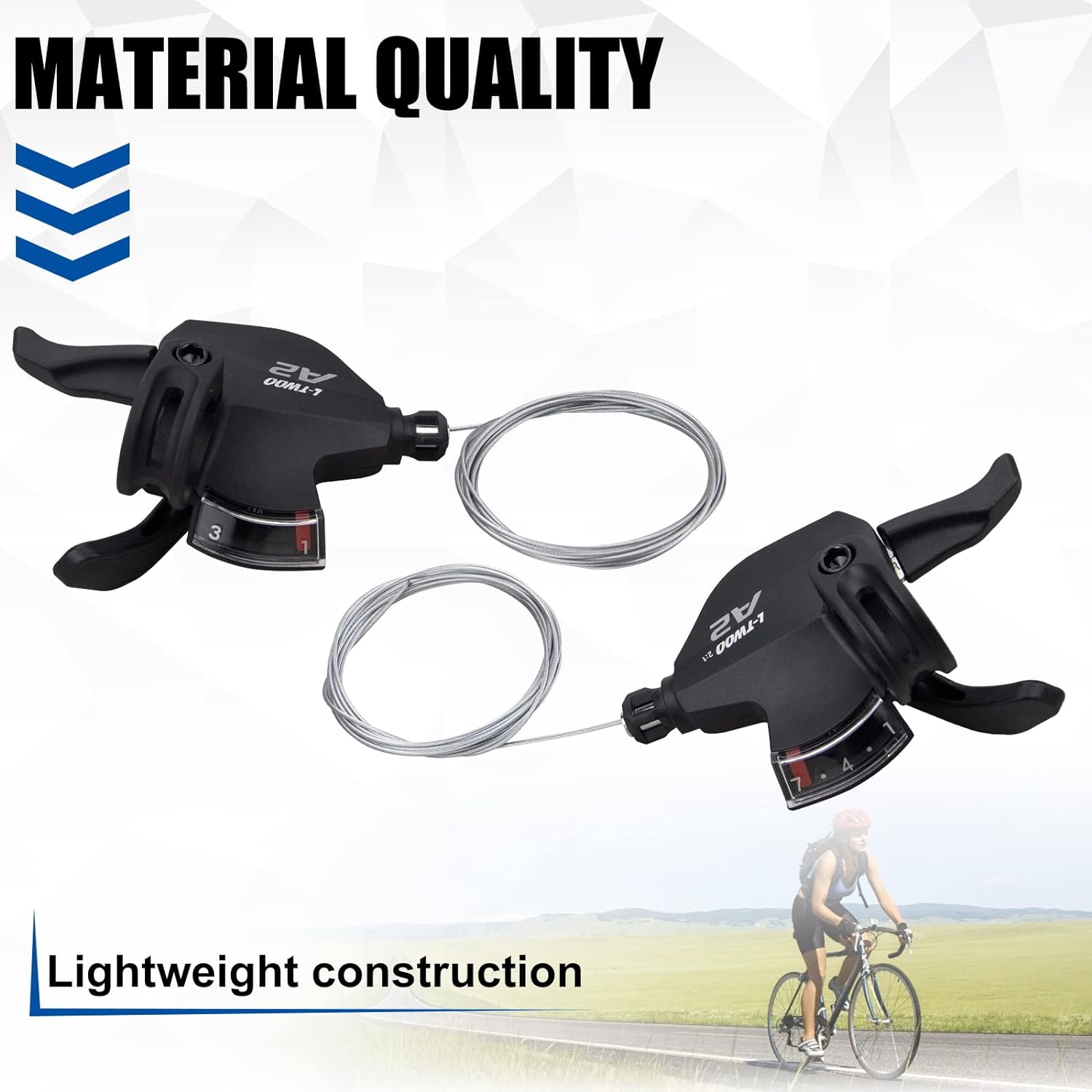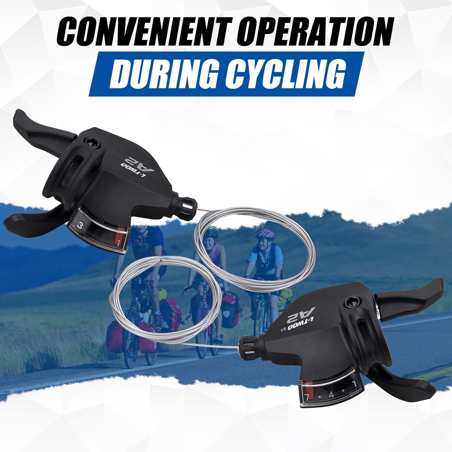 3X7 Shift lever: 3×7 21 Speeds shifter lever, front shifter 3 speed on the left, rear shifter 7 speed on the right, shifters come with cables.