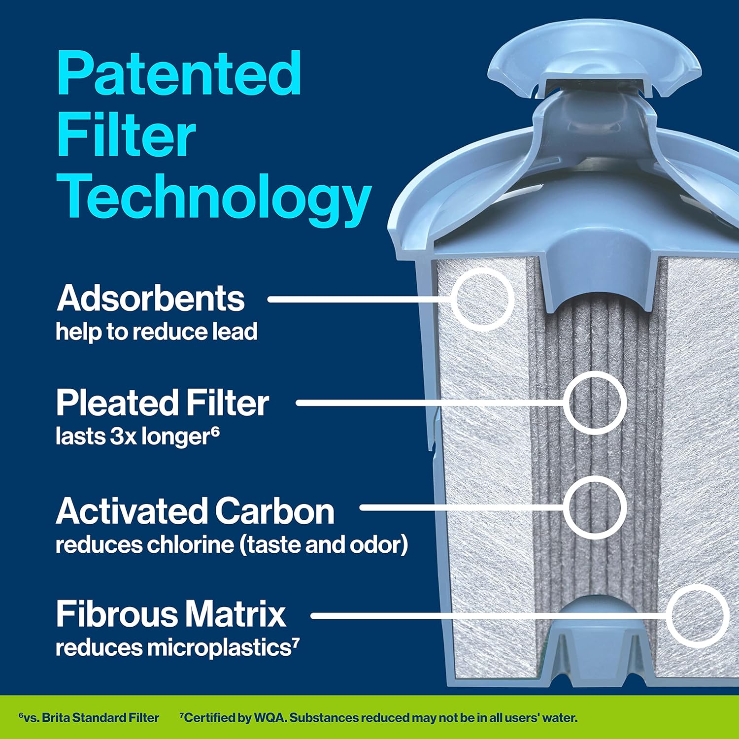 Get cleaner*, great-tasting water for longer with the Brita Elite Pitcher Replacement Filters which remove 99% of Lead* in your water and reduces 30 contaminants. This long-lasting water filter is made with Advanced Carbon Core Technology to reduce more than 3x the contaminants of standard Brita filters. The Brita Elite replacement filter reduces Lead, Asbestos, Mercury, Benzene, Cadmium, and more*. Change the Brita Elite filter every 120 gallons, about every 6 months for best performance**. The pull top cap makes insertion and removal easy. With activated carbon to reduce chlorine taste and odor, this water filter delivers great-tasting water and maintains a healthy level of fluoride (applies to fluoridated municipal tap water). The fibrous matrix in the filter holds active ingredients in place so no black flecks appear in your water. One Brita Elite filter can replace up to 900 16.9 oz single-use plastic bottles and reduces more contaminants vs. PUR and ZeroWater (based on NSF/WQA certifications for Brita OB06, PUR PPF951K, and ZeroWater ZF-201 pitcher filters as of 8/17/21). *Cleaner vs. tap water. Healthier based on health contaminant reduction per WQA certifications. Substances reduced may not be in all users water. See certifications. **Approximate timing based on 120 gallon (454 litres) lter life and average family usage of 11 glasses per day. ^Versus standard 16.9 oz bottled water. No single-use plastic bottle waste.