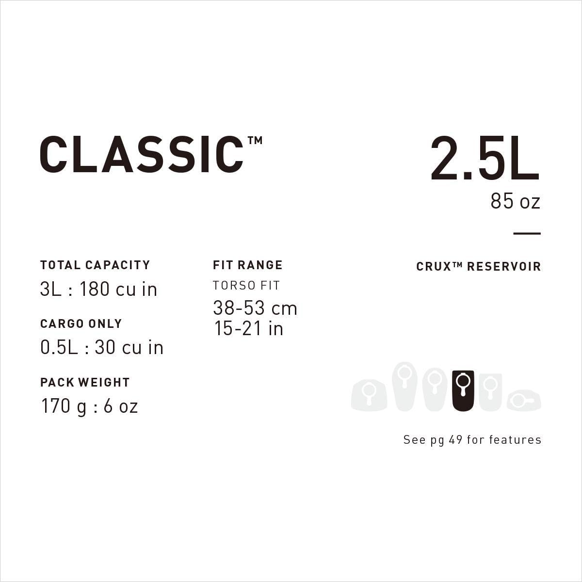 The name says it all: the Classic is the quintessential bike hydration pack, now updated with a Crux reservoir for a faster flow of water.