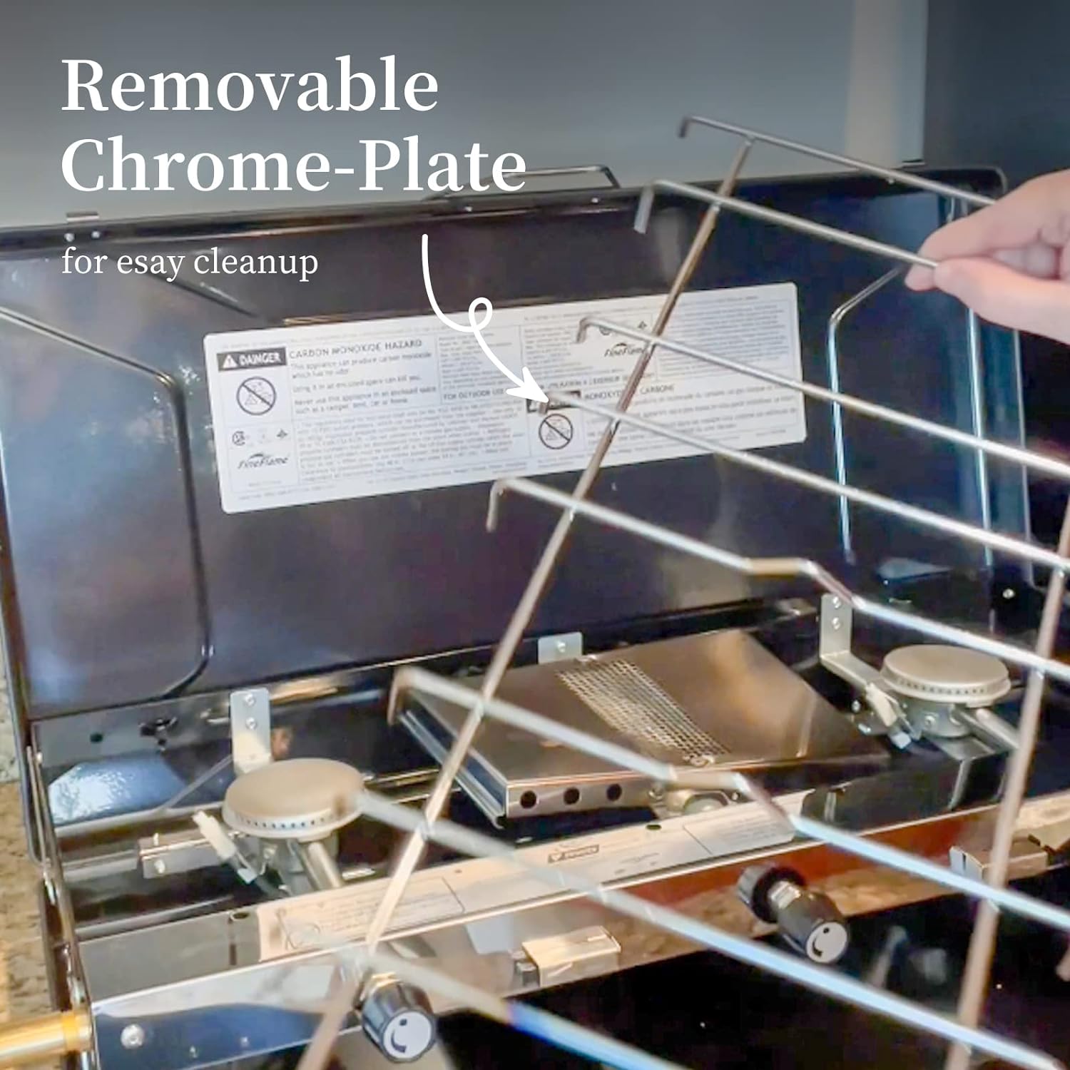 Our portable propane stove comes with a drip tray that makes it easy for quick clean up