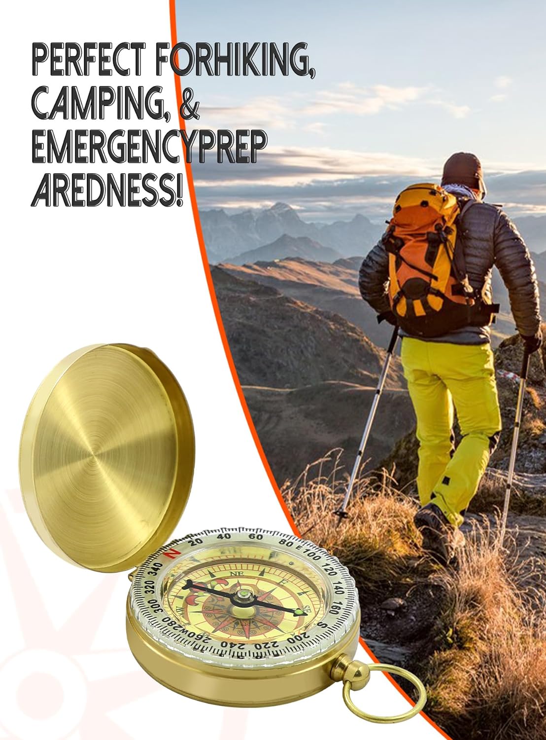 PANGPANGTAN The compasses is made of metal copper, acrylic mirror, retro nostalgic design, with 360-degree rotating bezel, easy to navigate and orient, high sensitivity and stability.