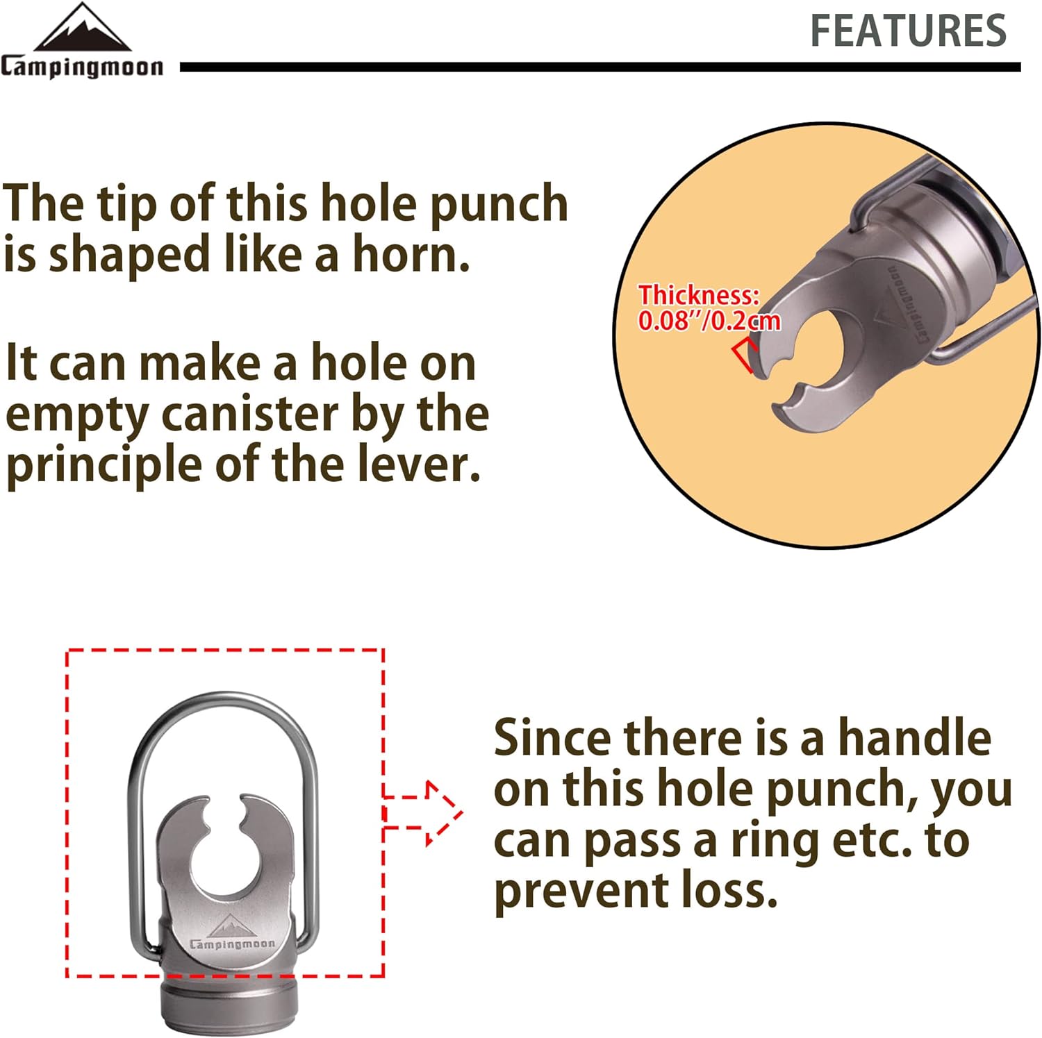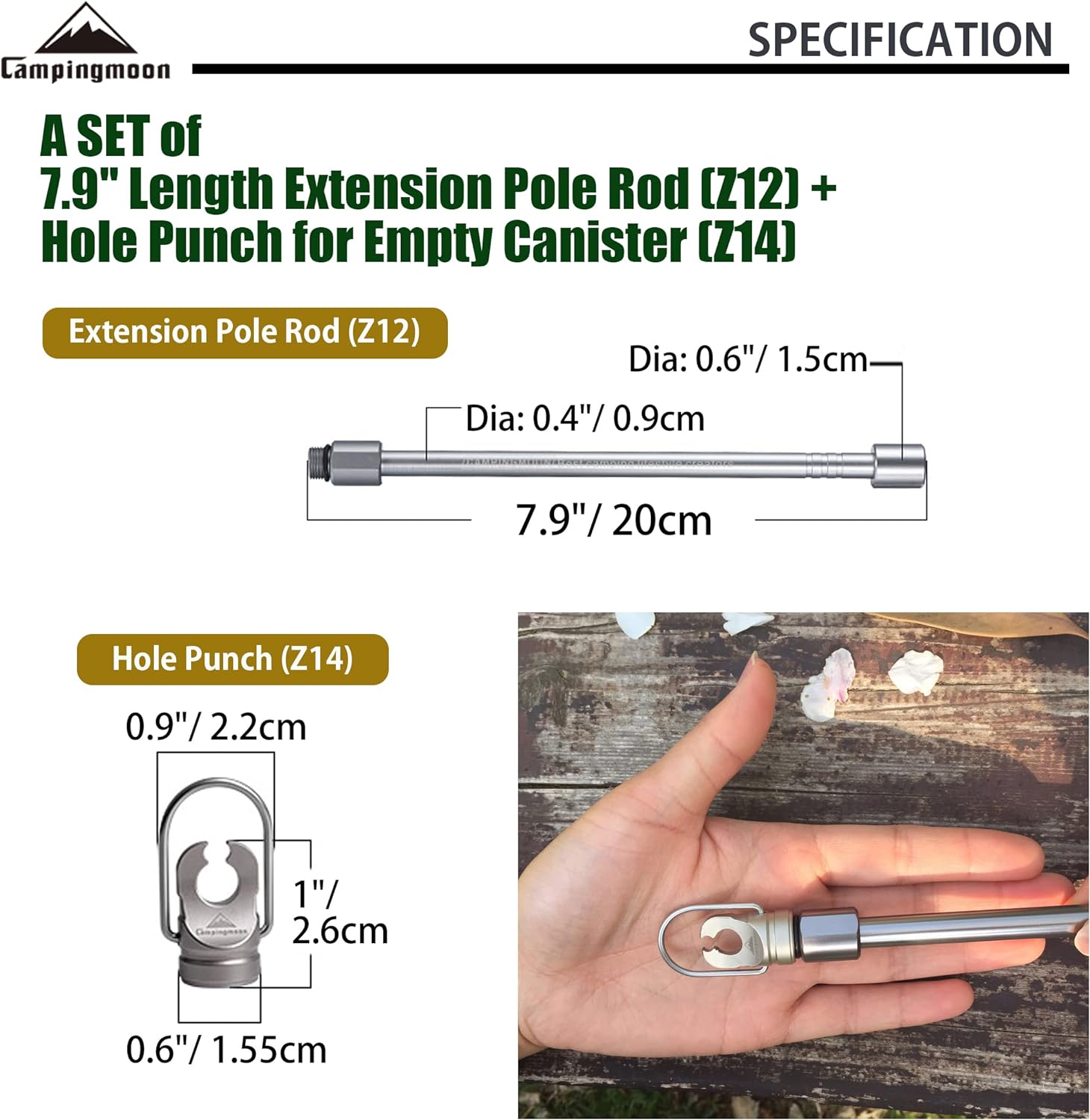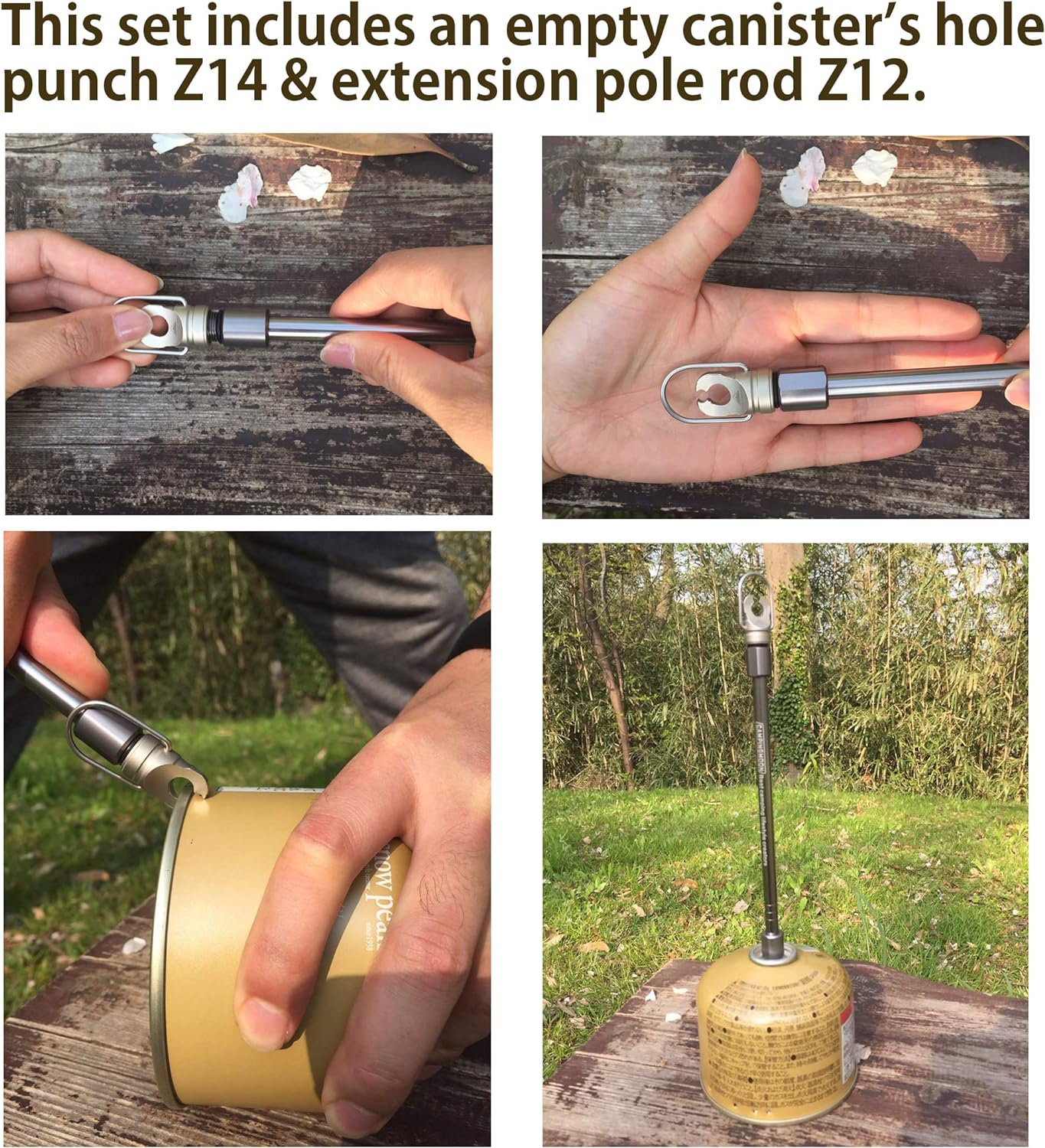 【This set includes Hole Punch & Extension Pole Rod:Z12+Z14】Gas fuel canister puncturing Z14 is a tool for drilling holes on an gas fuel canister using the principle of the lever. With extension pole rod Z12, you can drill holes on empty canister easier.