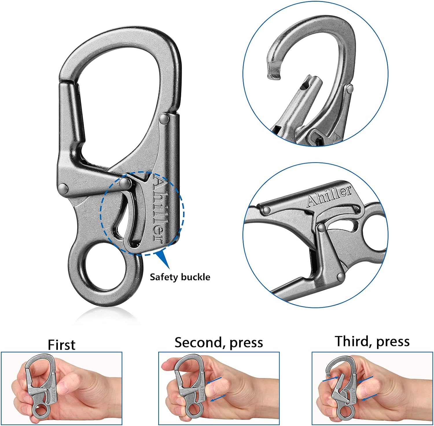 【Double Anti-misopening Design】Carabiner clip is 3.1*1.4 inch, and the opening diameter is 0.50 inches. These carabiner can be operated easily and smoothly with one hand. To prevent accidental slippage due to collision, press the switch at the other end to unlock the caribeener clips.We own the exclusive design patent for this product.