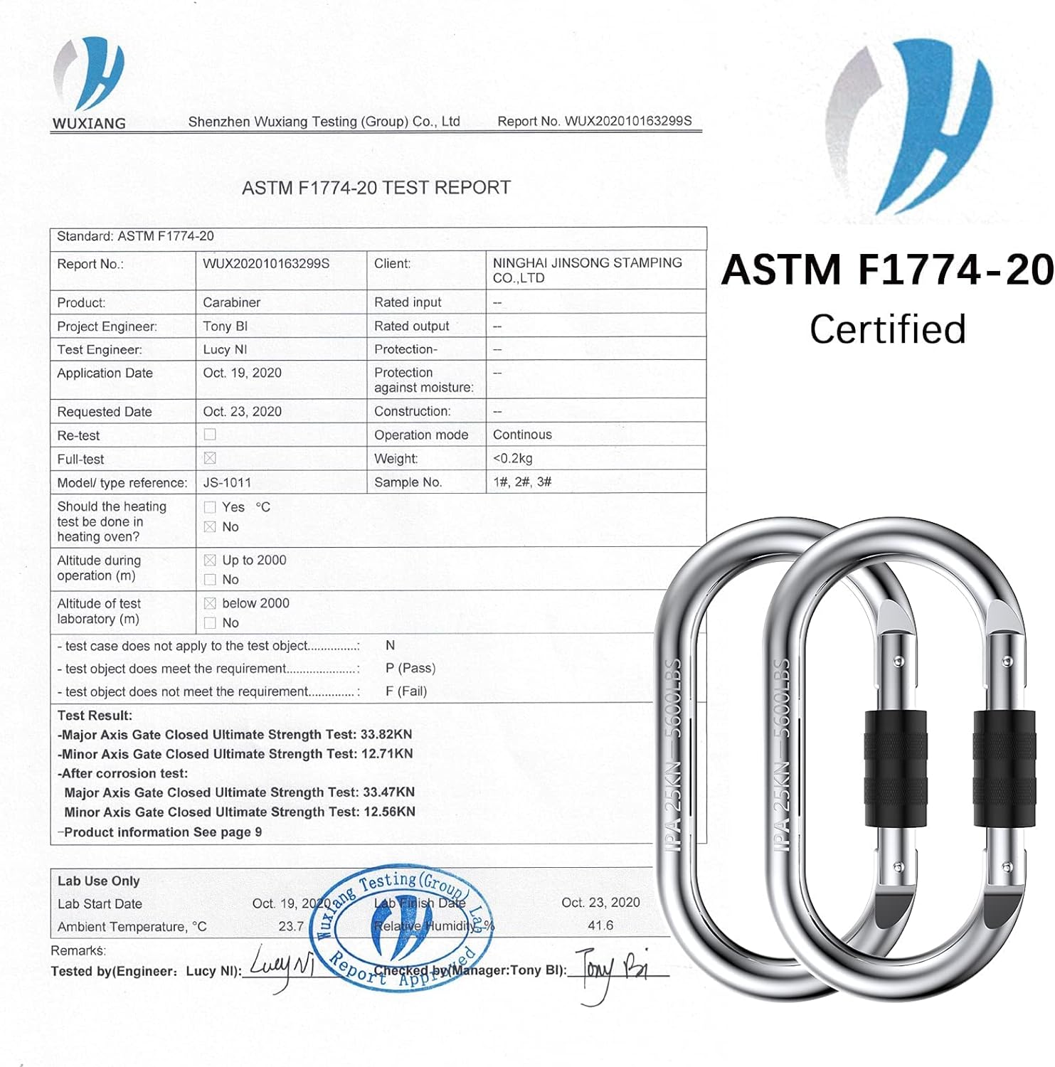 Oak-Sports climbing carabiner is certified by ASTM F1774-20, worth having—Safety, Strength, and Stability.