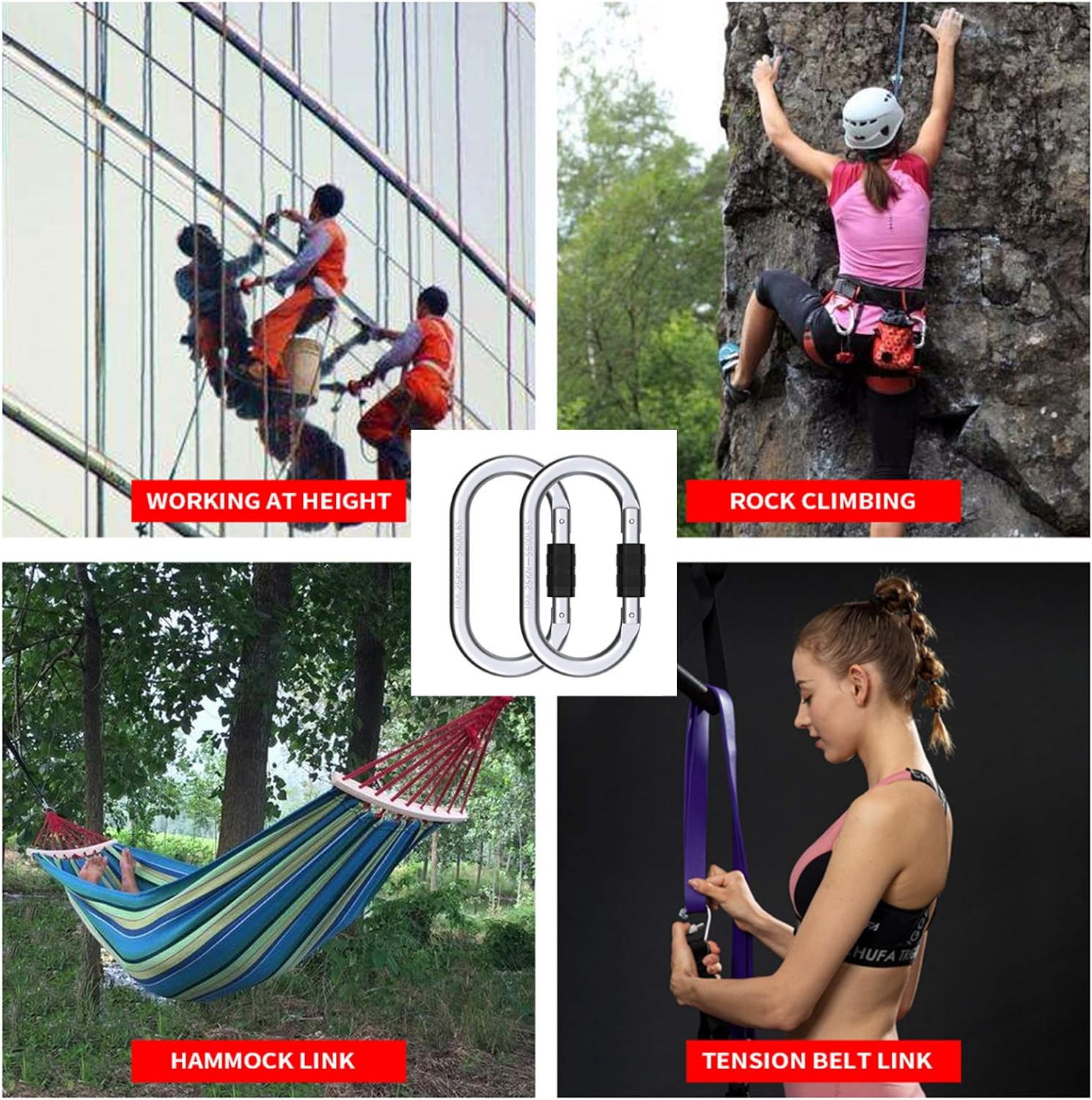 【Safety Design】Steel carabiner adopts the design of fast spring-loaded door,and the screw can lock the shackle to connect the rope,key ring and other items to avoid falling off.