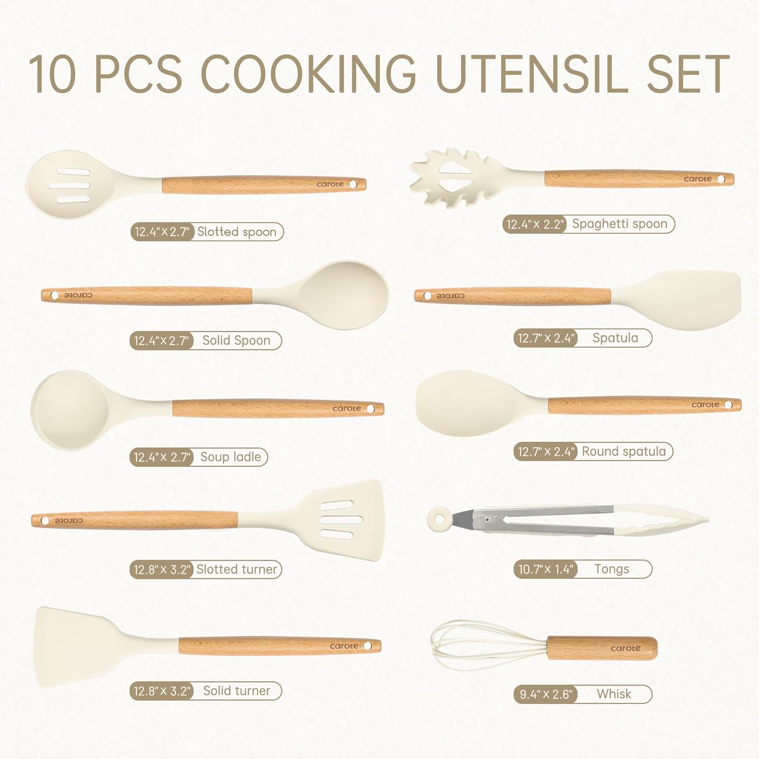 A MUST-HAVE FOR EVERYDAY: Our cooking set includes tongs, spatula, slotted spoon, solid spoon, slotted turner, soup ladle, pasta server, round spatula, solid turner, whisk, covering all your essential cooking needs with unbeatable value