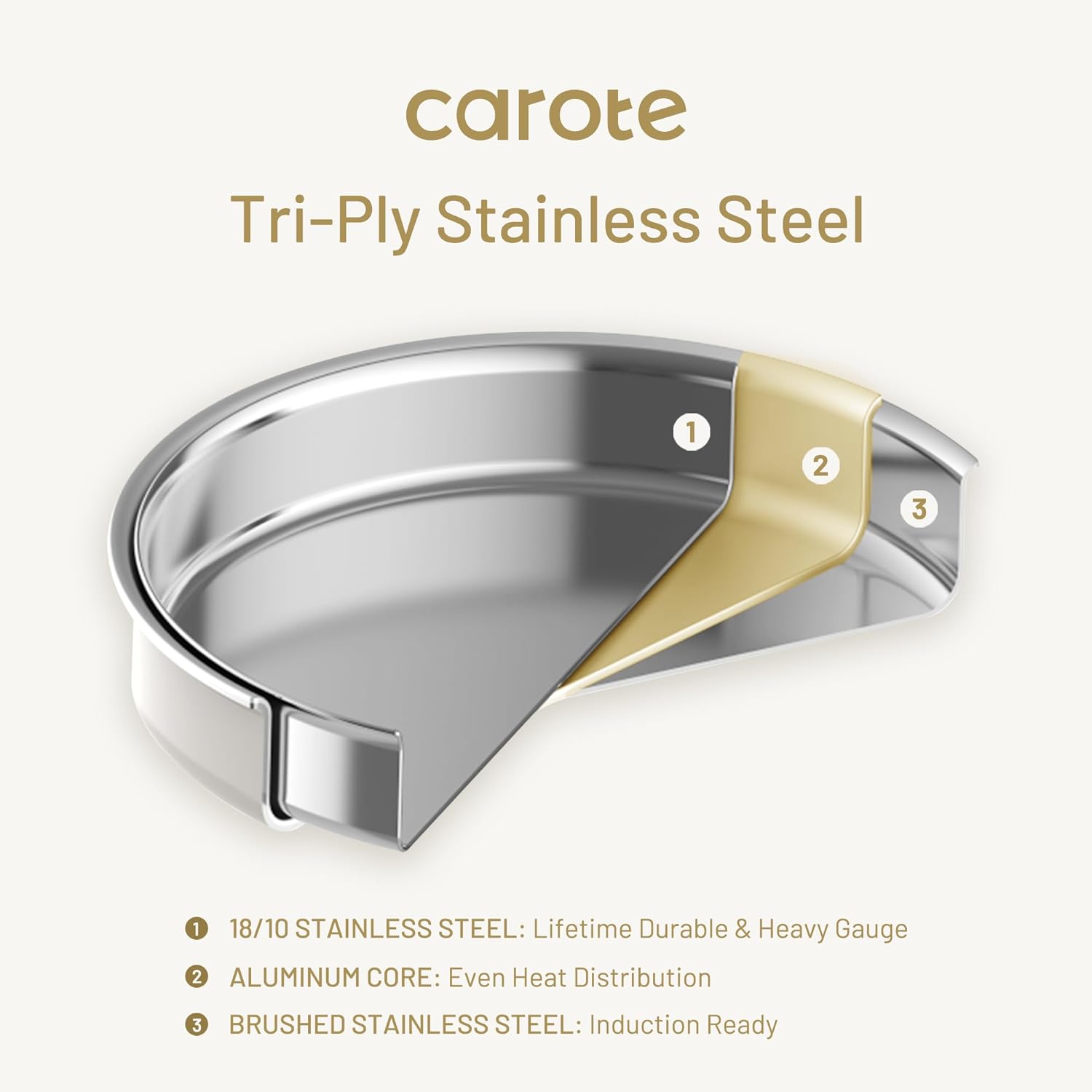 πππ-πππ πππππππππ πππππ: Crafted with a tri-ply stainless steel, each piece in this set is built for durability and efficiency. The aluminum core helps distribute heat evenly across the cooking surface, while the stainless steel is known for its durability and resistance to rust, stains, and corrosion.