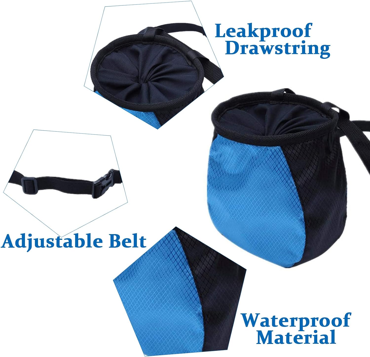 Chalk Bag, Rock Climbing Gear, Bouldering Chalk Bag with Adjustable Waist Belt and Drawstring Closure, Chalk Bag for Weight Lifting, Gym, Climbing, Billiards, Crossfit, Athletics(Blue)
