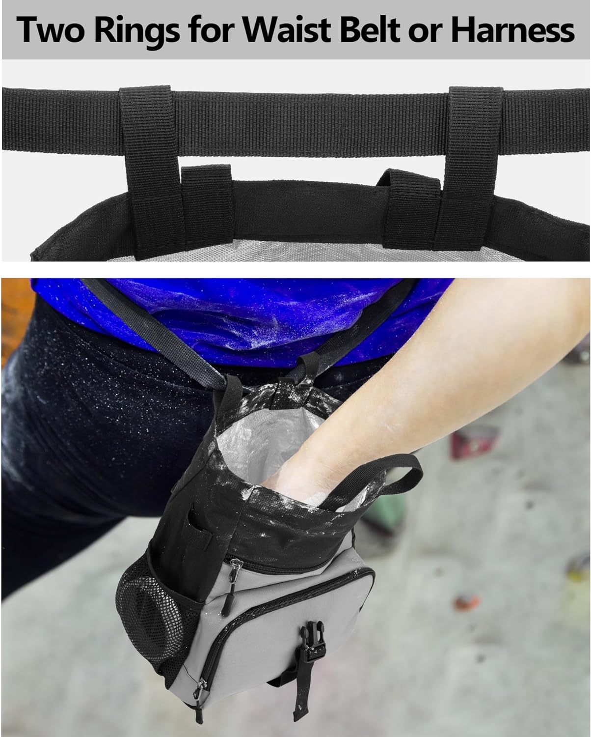 Specially Design – The chalk pot adopts a widen bottom design, keeping the bag stable and upright placed on the ground. Large opening design allow your both hands to access chalk easily.
