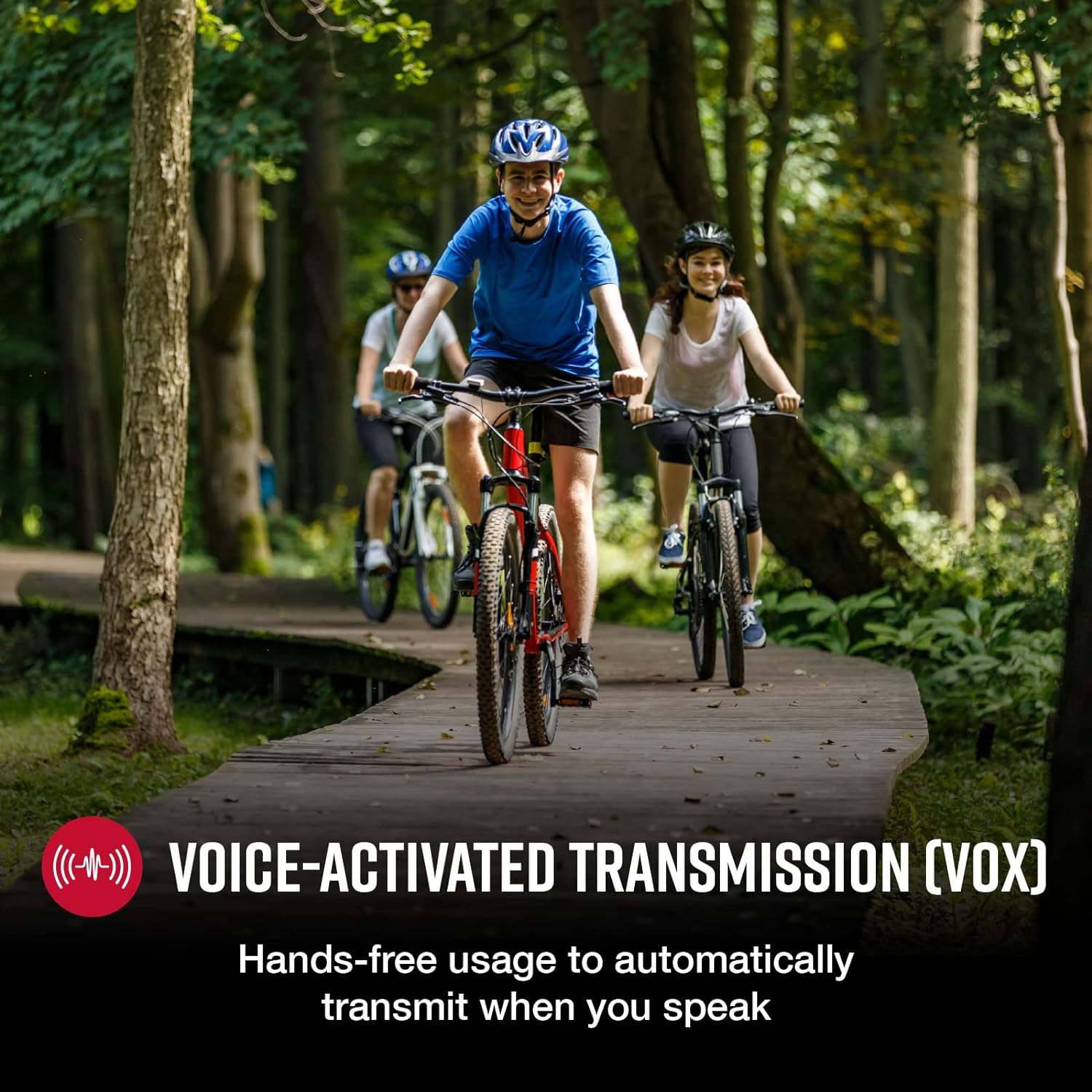 VOICE-ACTIVATED TRANSMISSION (VOX) – Hands-free usage to automatically transmit when you speak so you can keep your arms and hands free. Great when hunting or for construction sites or other working conditions.