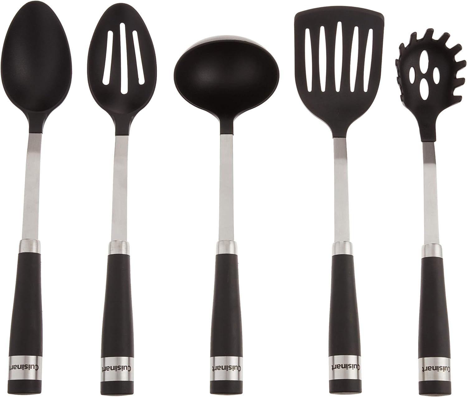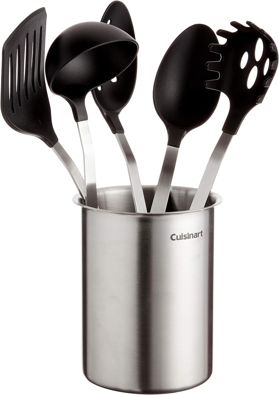 Maximize your cooking options! This item lets cooks create family favorites and elegant dishes – and adds a splash of color to brighten up your kitchen. Ideal for today’s cooks. These are a great addition to the collection and make every step easy. Features: Includes 5 tools and crock in easy reach|Soft-grip handles with stainless steel|Nylon tool heads are safe for nonstick cookware and heat resistant to 400˚F|Dishwasher safe