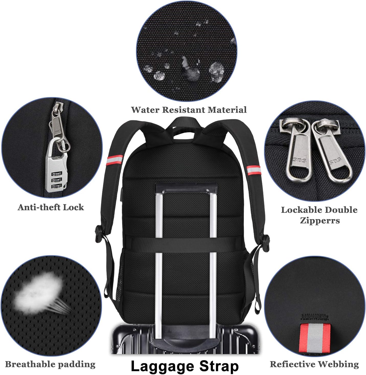 Della Gao Travel Laptop Backpack, Extra Large Anti Theft Backpack for Men and Women with USB Charging Port, Water Resistant Big Business Computer Backpack Bag Fit 17 Inch Laptop, Black