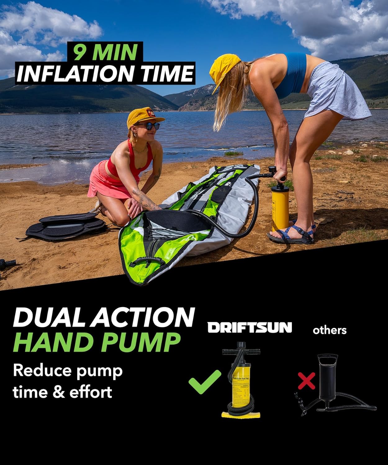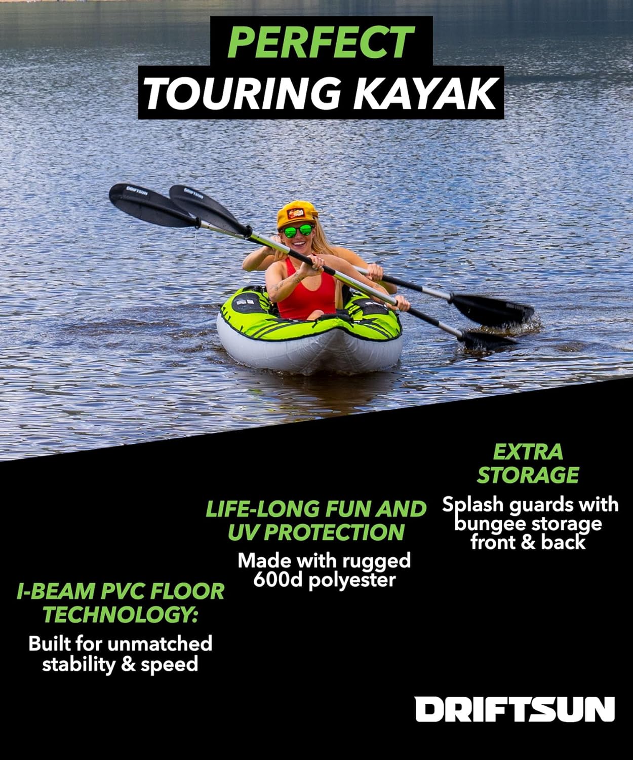 Driftsun Almanor Inflatable Kayak – Inflatable Touring Kayak – Inflatable 1 and 2 Person Kayaks for Adults with EVA Padded Seats, High Back Support, Paddles, Pump (1 Person, 2 Person, 2 Plus 1 Child)