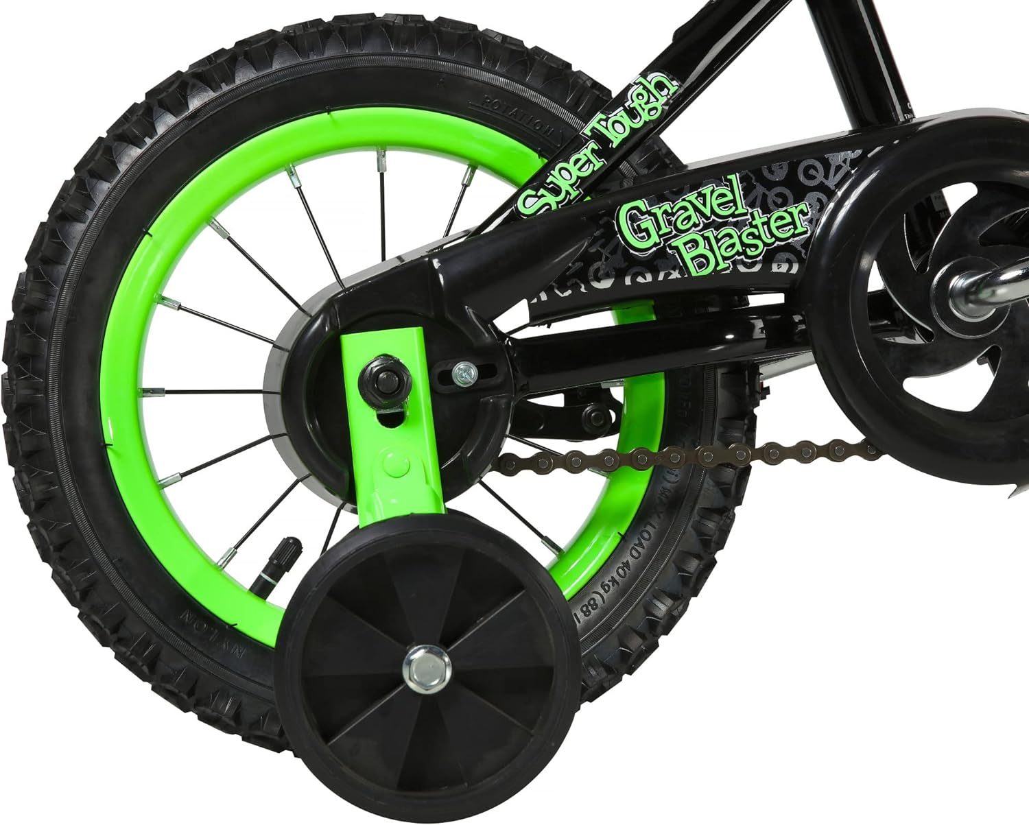 Let your kid turn gravel into sand with the Magna Gravel Blaster 12-inch Bike by Dynacraft! Gravel doesn’t stand a chance with your kid on this one-speed, bright, striking green bike. Motor, around on sturdy wheels and fat tires, with green trim and matching handlebars. Adjustable training wheels keep everything stable, while a solid coaster brake makes stopping a cinch. It’s time to blast on the Magna Gravel Blaster 12-inch bike!