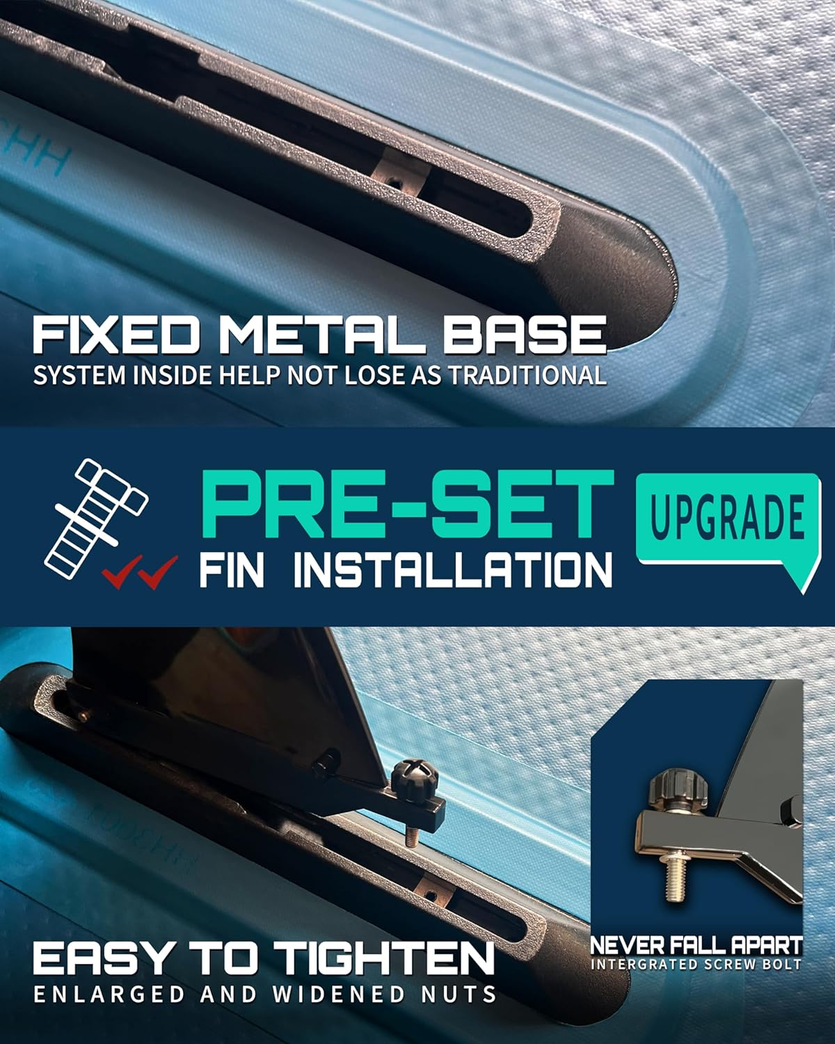 【FULL ACCESSORIES】Our blow up paddle board comes with a full range of accessories. With your purchase, you will receive a high-quality adjustable paddle, a hand pump, a leash, a removable fin, and a backpack for easy storage and transportation. These accessories ensure that you have everything you need to hit the water and make the most out of your paddle boarding experience.