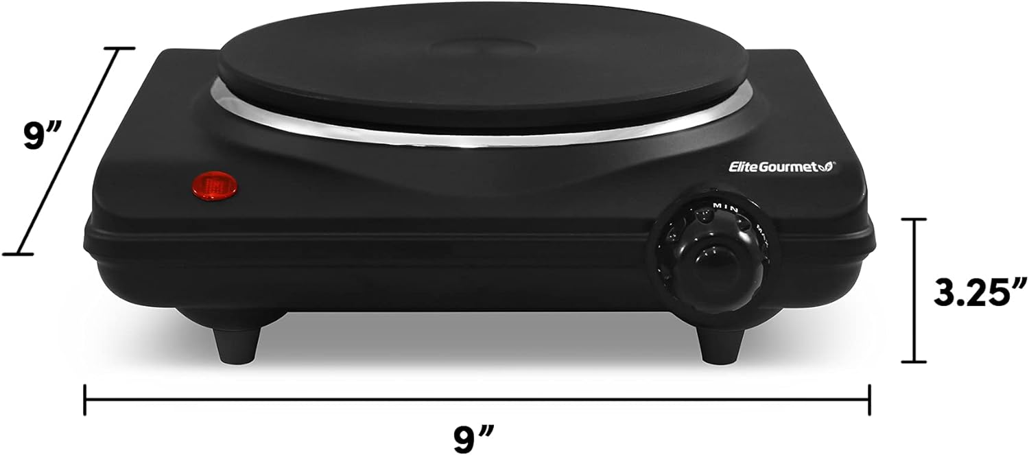 Cooking is quick, easy and consistent with the Elite Gourmet Electric Single Buffet Burner. This portable electric hot plate offers reliable heating and takes up minimal cooking space. At 1,000 watts, it heats up quickly with an adjustable temperature knob. The non-stick cast iron hot plate will ensure even cooking and makes clean up a breeze. It features adjustable temperature control with Off, Warm, Low, Medium, and High settings. The heavy duty cast-iron flat heating plate is easy to clean. It features a cool-touch base and non-skid rubber feet for stable cooking. It’s perfect when you need an extra heat source for holiday cooking and entertaining, or simply use it to keep food warm at a buffet station.