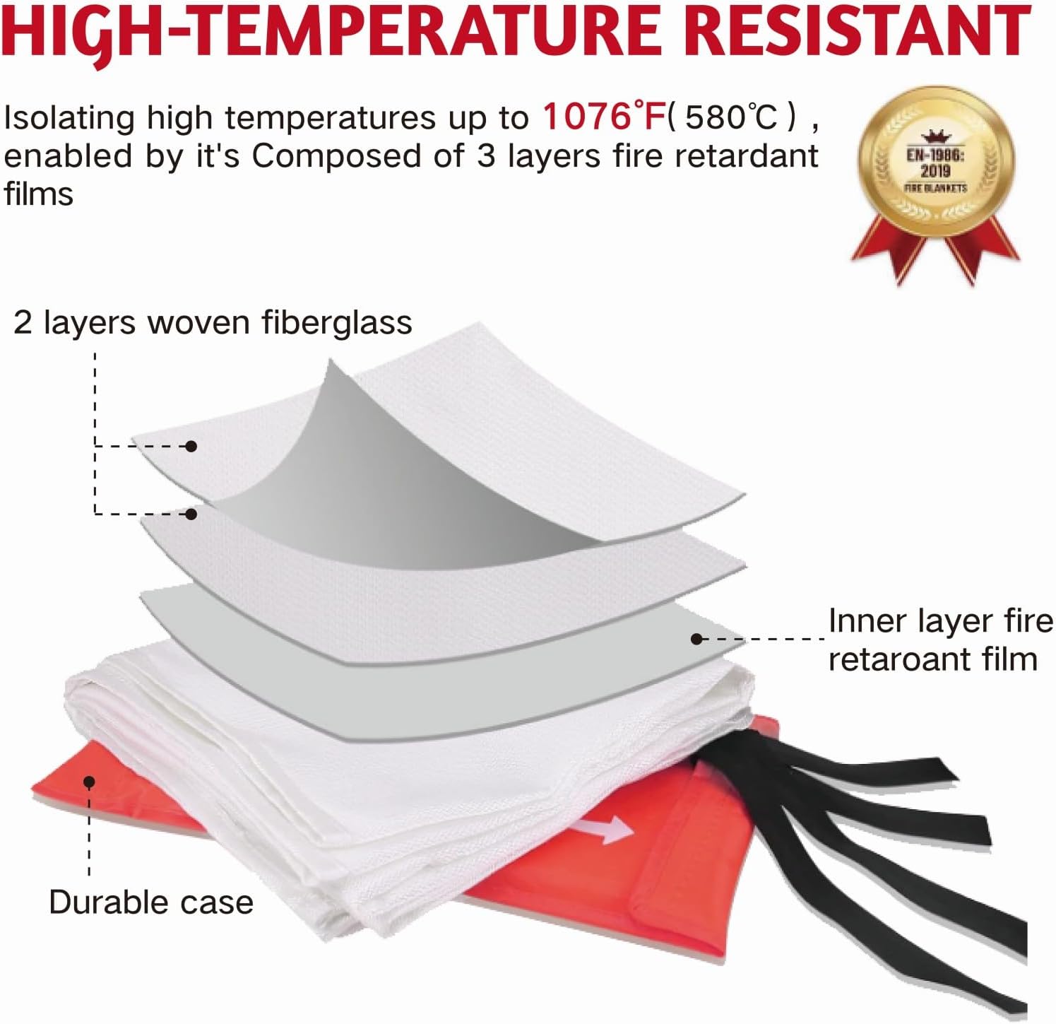 Durable Fire Retardant Material: Crafted from premium fire-retardant materials, this blanket is engineered to withstand high temperatures and flames. Its robust construction ensures long-lasting durability, providing you with peace of mind knowing you have a reliable defense against fire emergencies in your household.