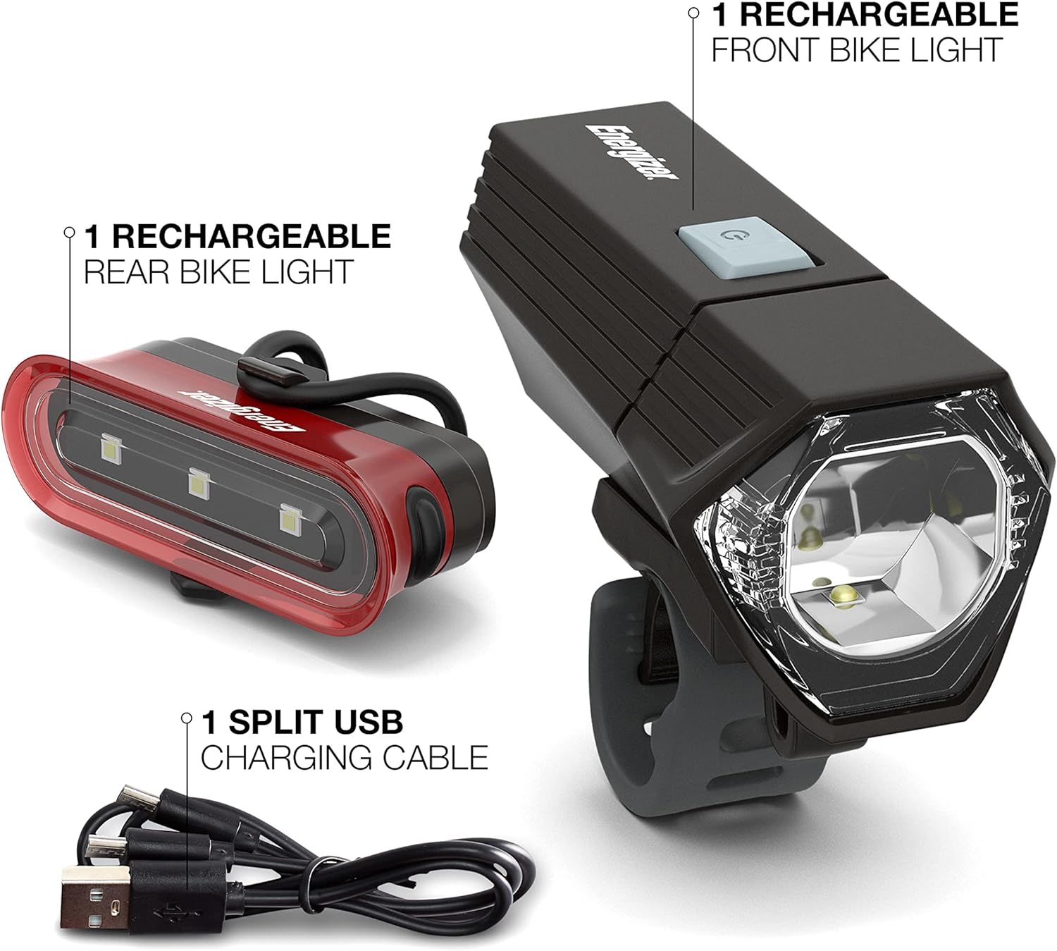 [Front and Rear LED Clip On Light for Bikes]: The Energizer Rechargeable Bike Light is great for cyclists on the road, and includes one front and one rear LED light