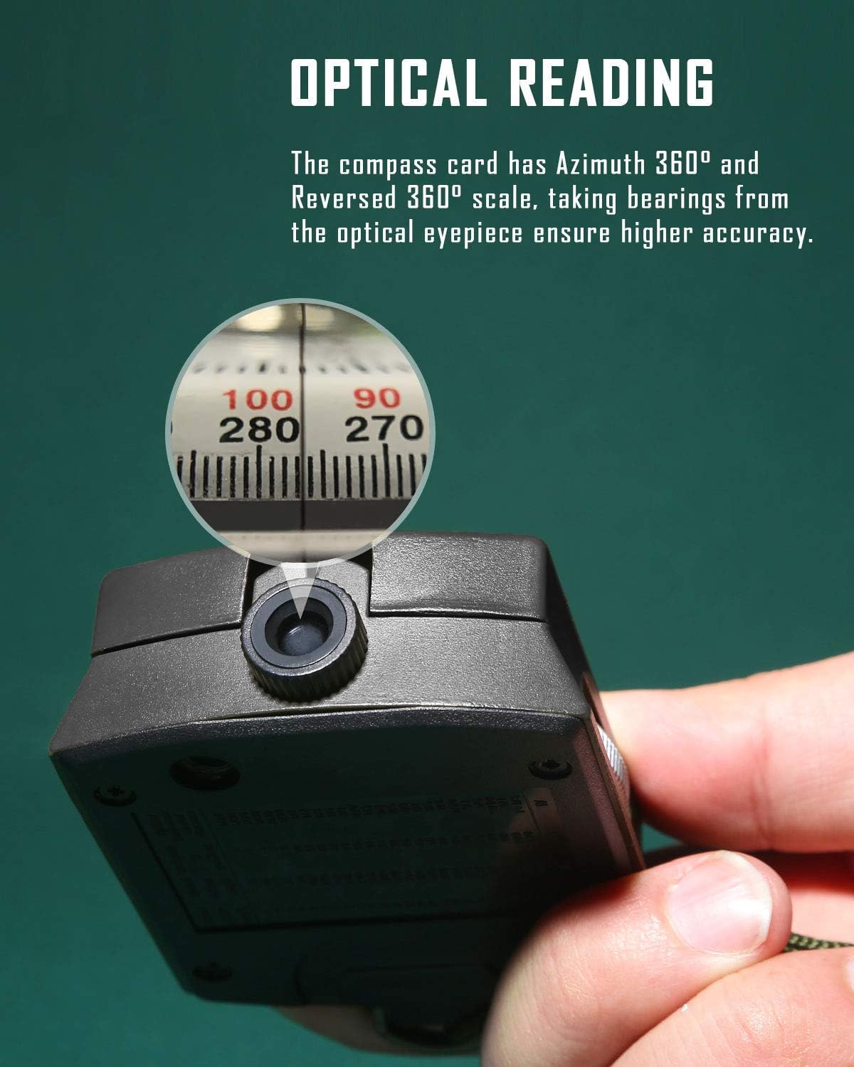 EASY AND ACCURATE READINGS – The floating compass dial has a 360 degrees scale with liquid-filled capsule for stable operation. Featured with a level bubble to improve accuracy, the easy to see sighting window with reticle makes it easy to aim and read.