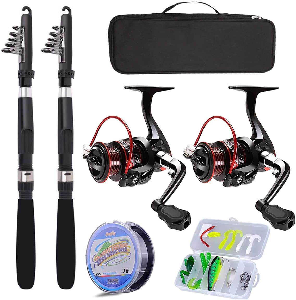 【2PCS Fishing Pole Full Kit】included:2PCS Carbon Fiber Fishing Pole + 2PCS Spinning Fishing Reels + Carrier Bag + Various Fishing Lures Baits + Fishing Hooks.