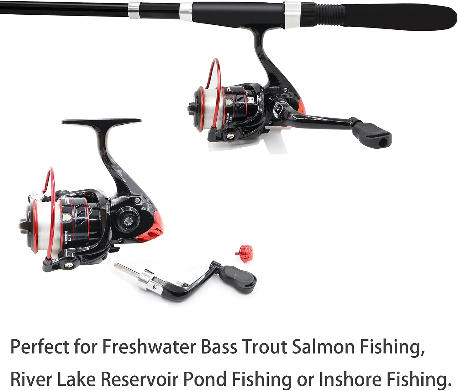 【2 x Powerful FF3000 Spinning Reels】The spinning fishing reels has a folding design, metal handles, and a more comfortable handshake. The reverse stop switch controls the forward and reverse rotation of the fishing wheel. The rocker arms can be exchanged left and right to meet different user habits.