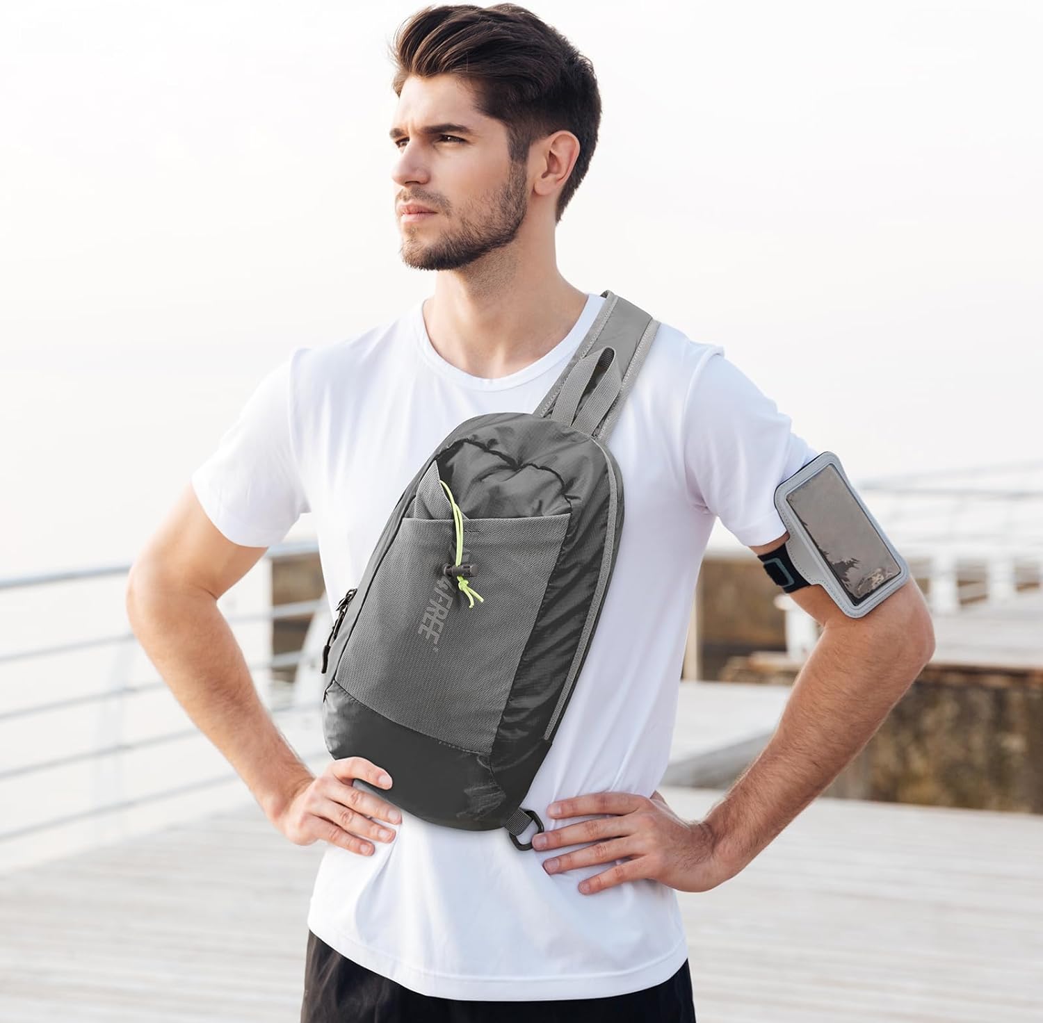 【Stay Organized at All Times】 Designed to keep your belongings in order, this sling bag for men boasts a main zippered pocket with 2 compartments. It also includes a dedicated reflective keychain that serves as versatile storage, allowing you to swiftly clip and locate your keys without any hassle. Additionally, the top of the bag features a concealed earphone hole, ensuring convenient access to your earphones, so you can enjoy music on the go, wherever and whenever you please.