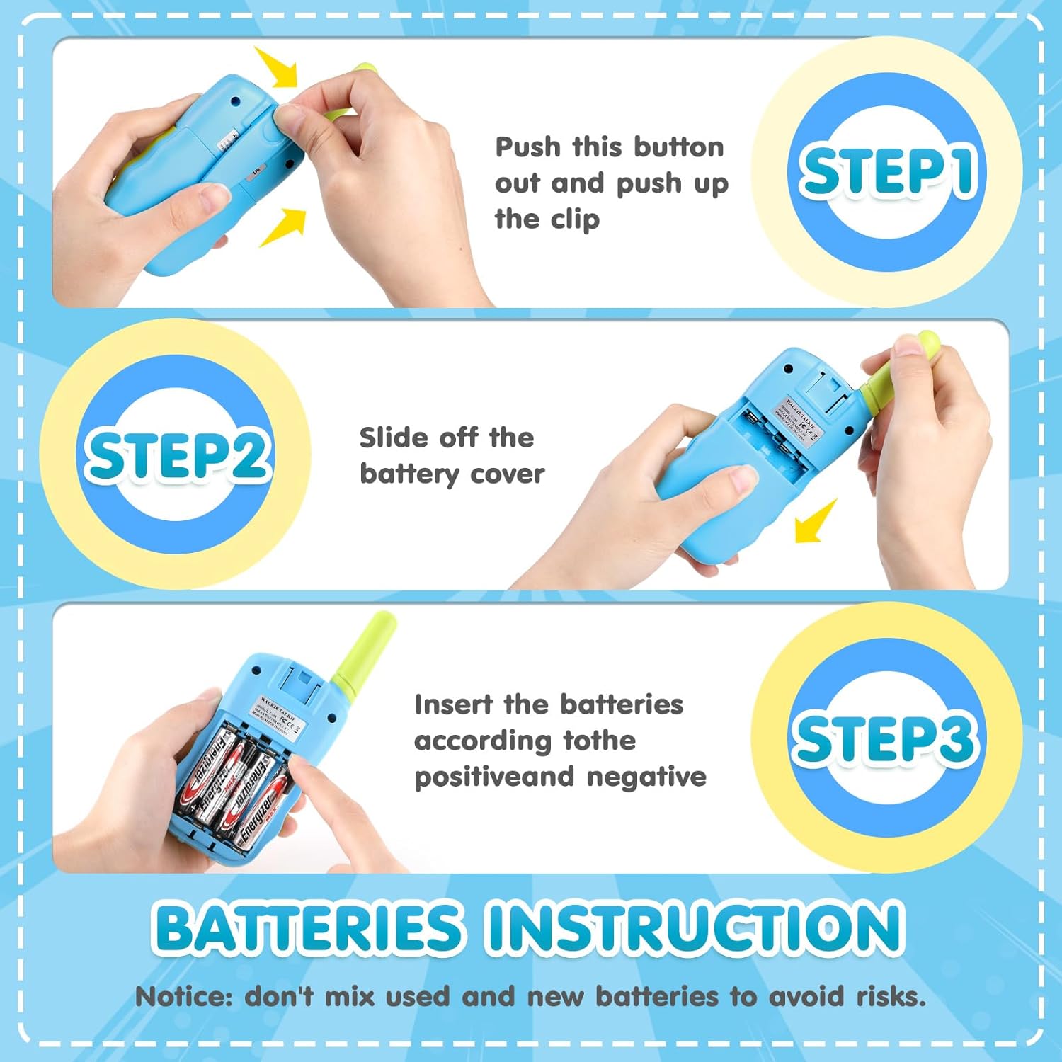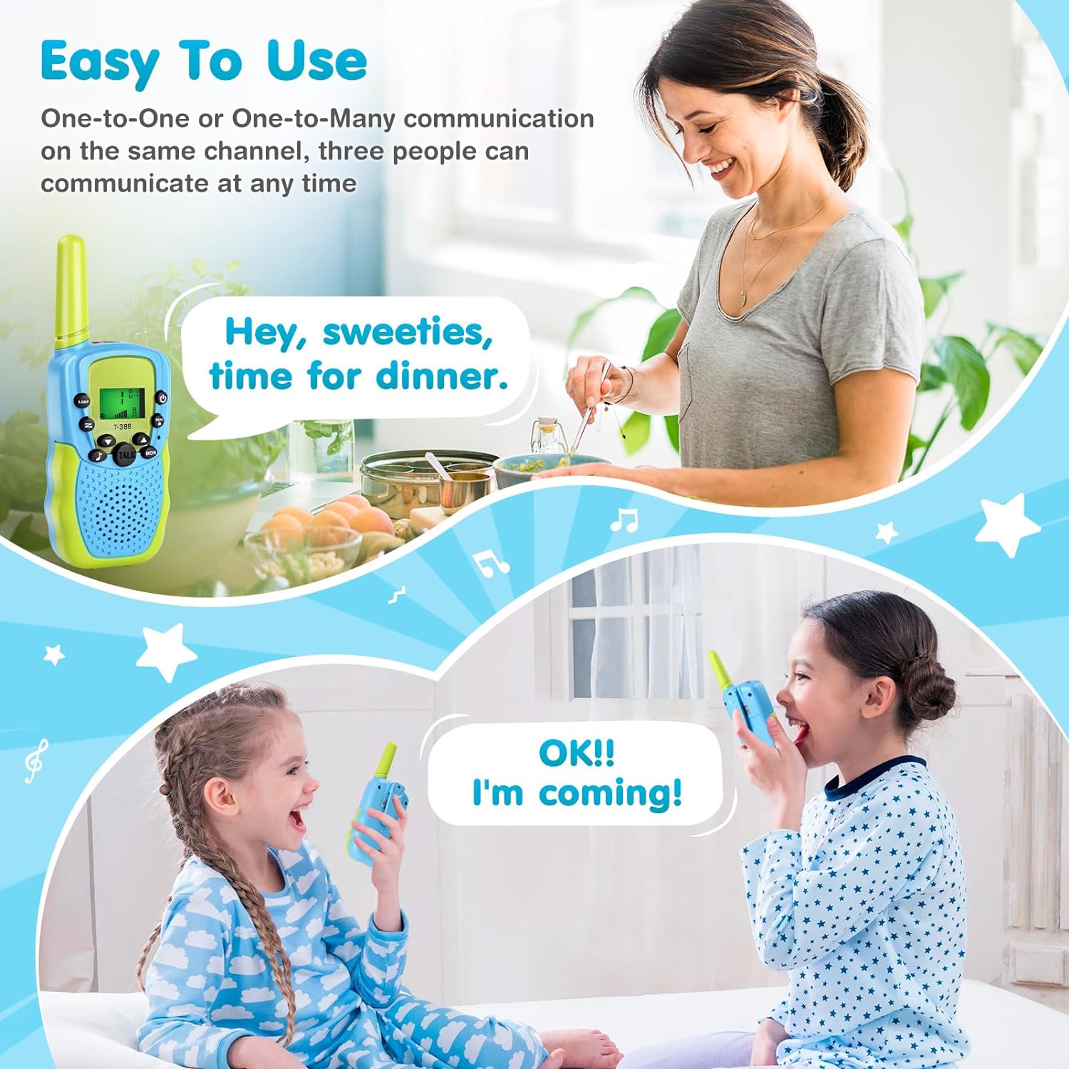 【Perfect Gift for Children】Walkie talkies for kids, It is not just a kids toy! It can help parents find an interesting and inspiring way to accompany kids and listen to the inner voices of their kids, bringing the family closer. Let’s go of the smartphones and be close to nature. Perfect for a birthday party, hiking, camping, hide and seek, playground, travel, shopping, etc. Ideal as 3 4 5 year old boy birthday gift!