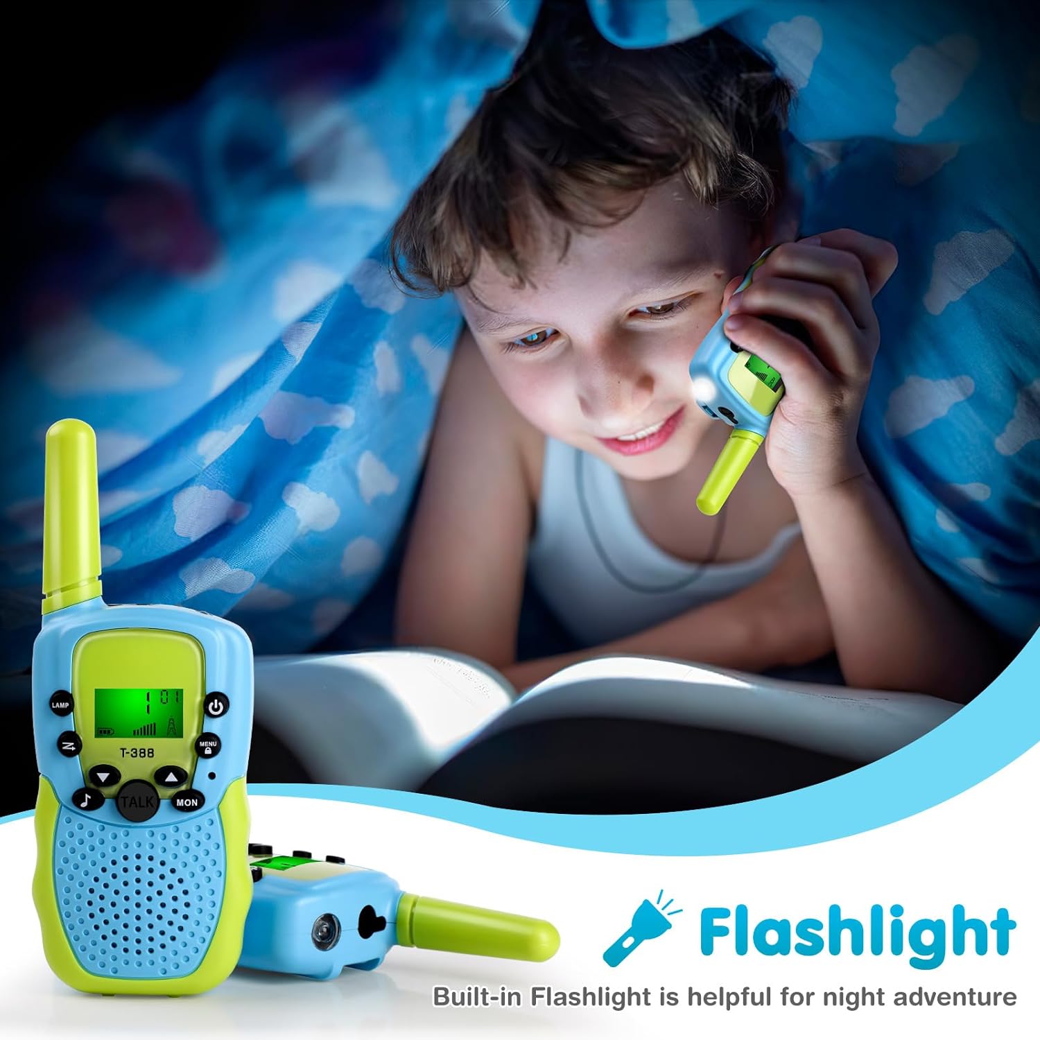 【Durability】Durability is essential for any kids toys and the more it can handle the occasional bump or fall means it’ll last. Strong materials and unique angle design can help our kids walkie talkie withstand a falling impact of 1.2m. This walkie-talkie for kids is fit as kids toys boys 3-5, camping outdoor gear, giving kids endless fun when play outdoors!