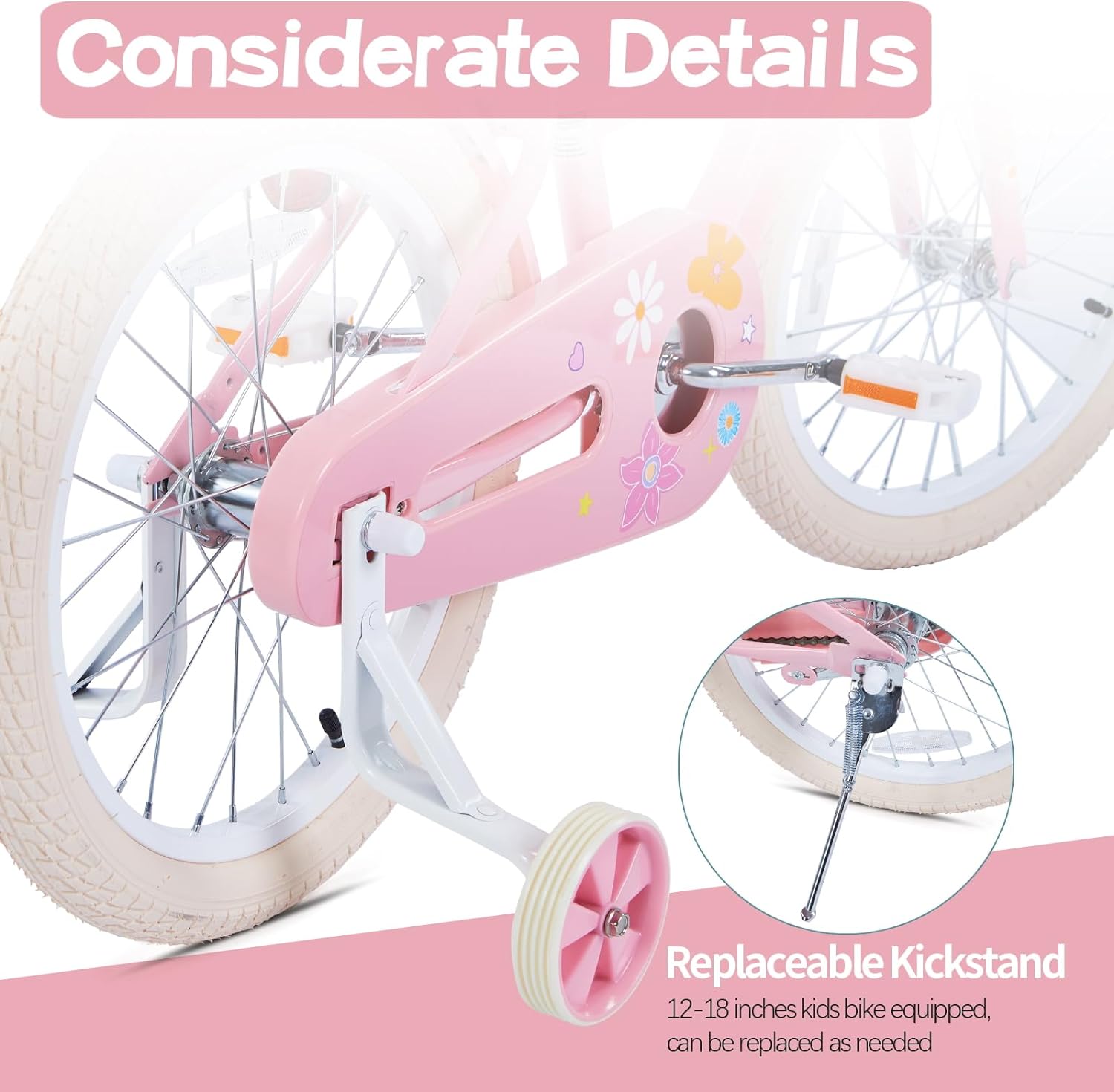 【Safer Riding】This girls bike is designed with your kids’ safety in mind. The fully enclosed chain guard prevent kids’ feet from being pinched, and ensures that free from any potential entanglements. With both a coaster brake and a reliable hand brake of our kids bike, your kids can confidently maneuver and stop the bike with ease.