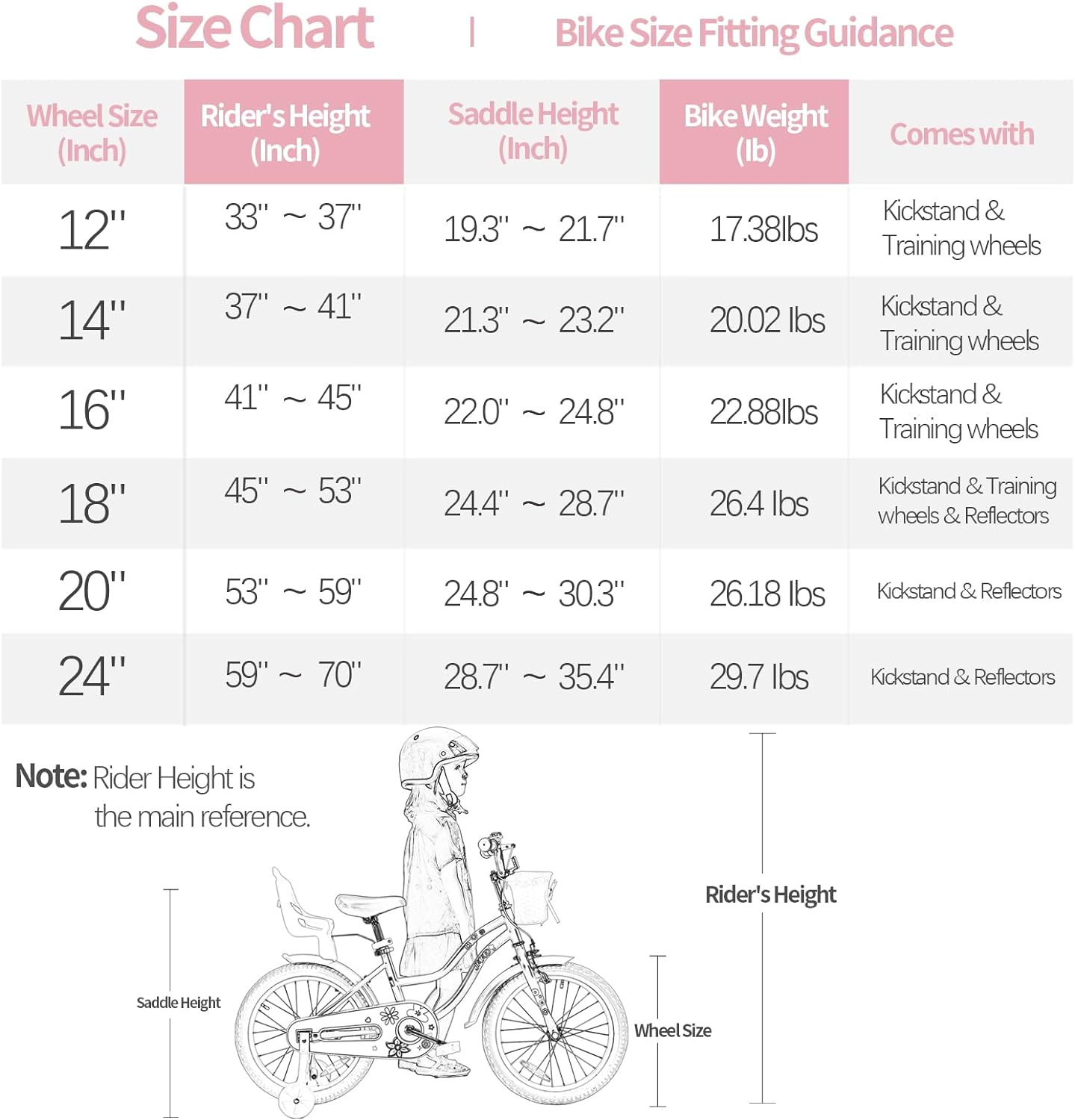 【Buy with Confidence】Before purchasing, please refer to our size chart to choose the right bike for your child. Please feel free to contact us if you have any question about JMMD girls bike ages 4-12 years old, we will provide for satisfaction after-sales program, please rest assured to buy.