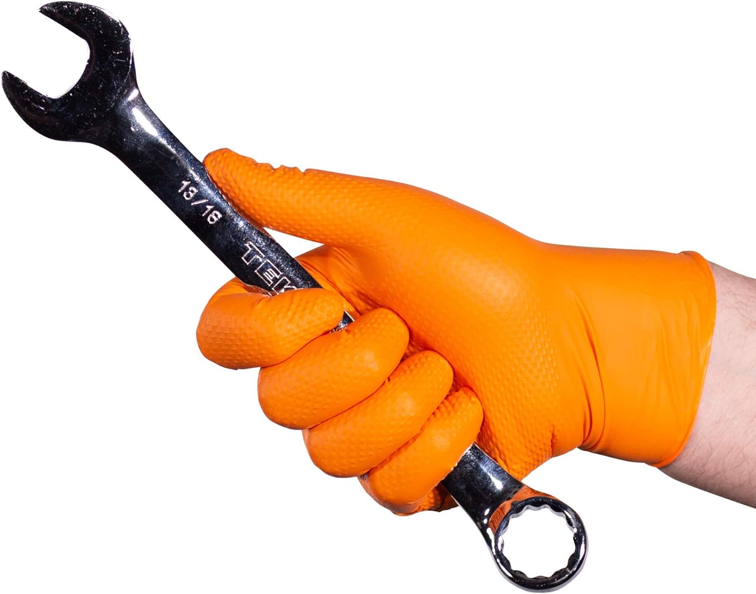Three words- Raised Diamond Texture. Our top-selling line of heavy-duty raised-diamond texture (RDT) nitrile gloves provides a reliable grip on tools- even when wet!