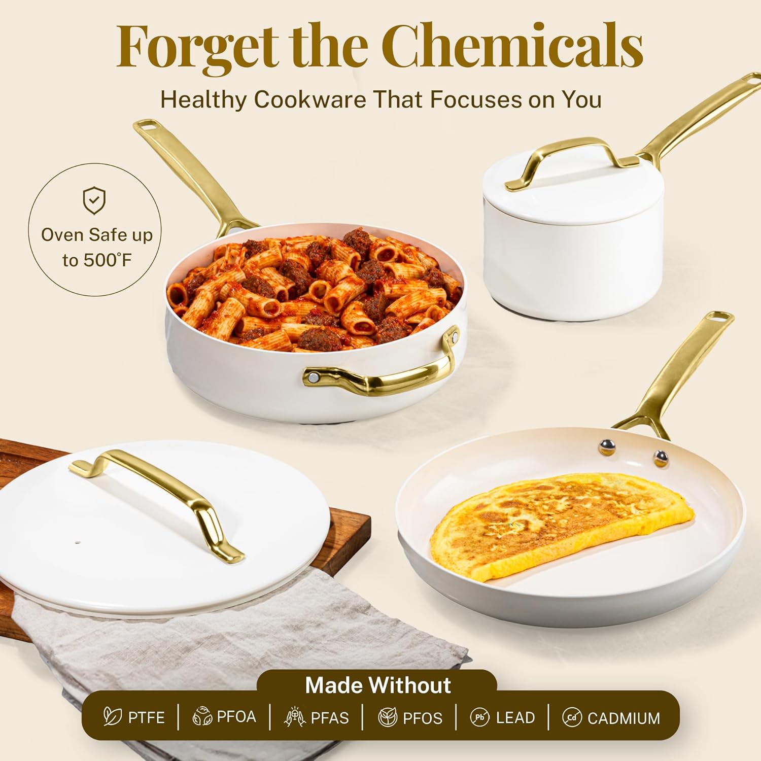 NON TOXIC: This non toxic cookware set is thoughtfully crafted and made without PFOA, PFOS, PFTE, PFAS, lead, or cadmium, so you can cook your healthiest.