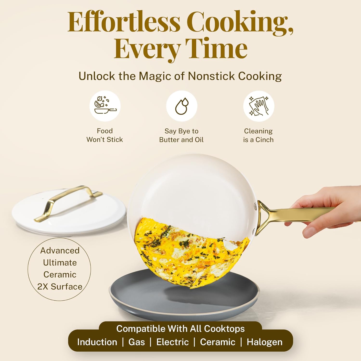 ULTRA CERAMIC 2X COATING: Enhanced to last twice as long as our award-winning Ti-Cerama coating. Constructed from a combination of titanium and ceramic, Gotham Steel Modern ceramic cookware is made to withstand everyday use. juego de ollas para cocina, sartenes para cocinar antiadherentes ollas de cerámica para cocinar set de ollas de cocina juego de ollas