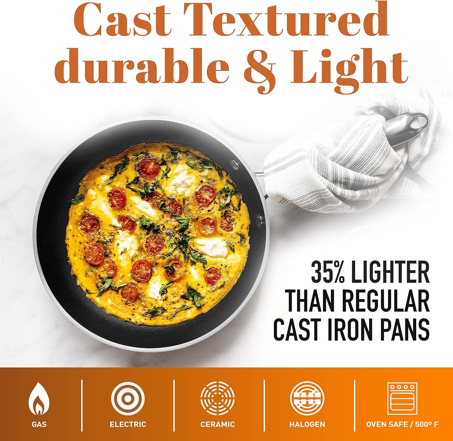 STOVETOP & OVEN SAFE – compatible with all stovetops (gas, electric, glass) besides induction & oven safe up to 500° F